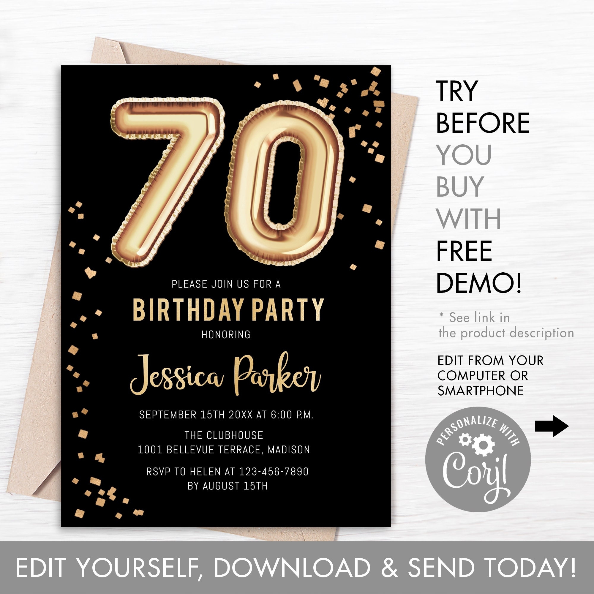 Free Custom Printable 70th Birthday Invitation Templates Canva