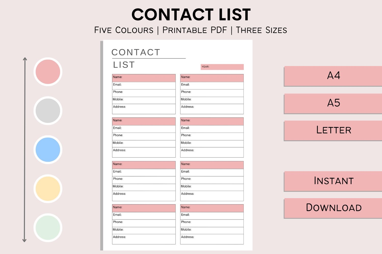 Printable Contact List Address Book Template Address Log Planner Insert Phone Directory Template Client Contact List Lead List Etsy