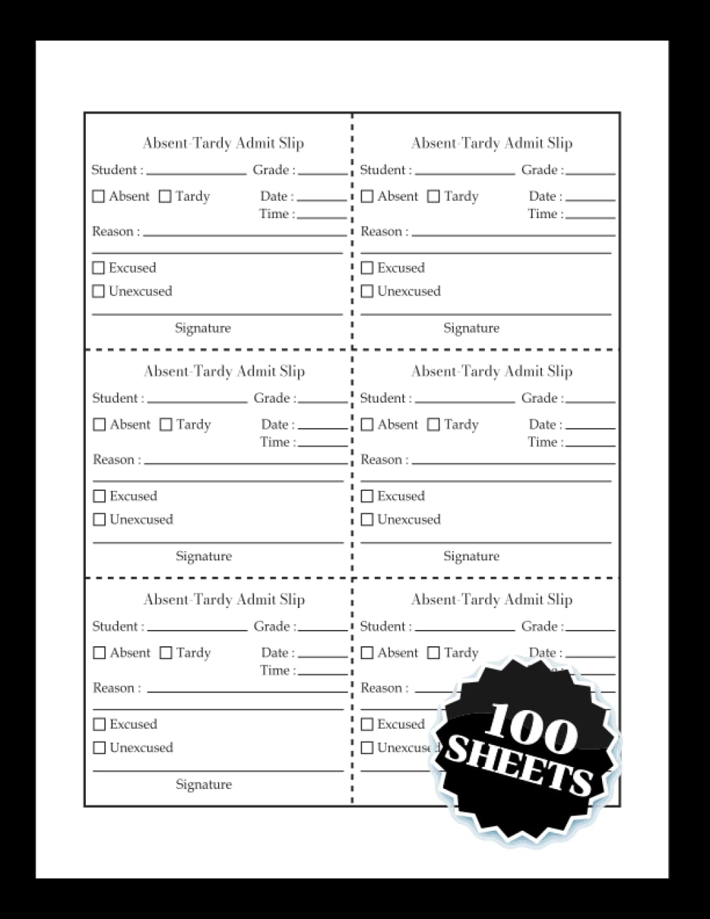 Student Admit Slip Book Early Dismissal Slip Book Absent Tardy Admit Slips For School Tutors Iere Amazon Books