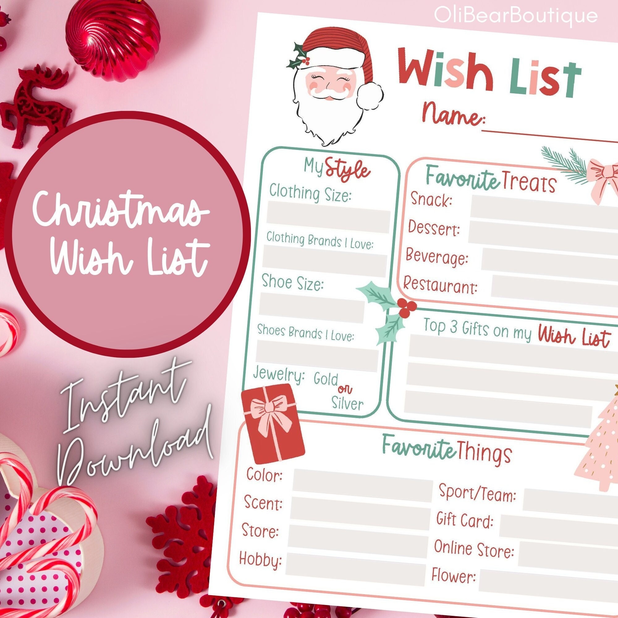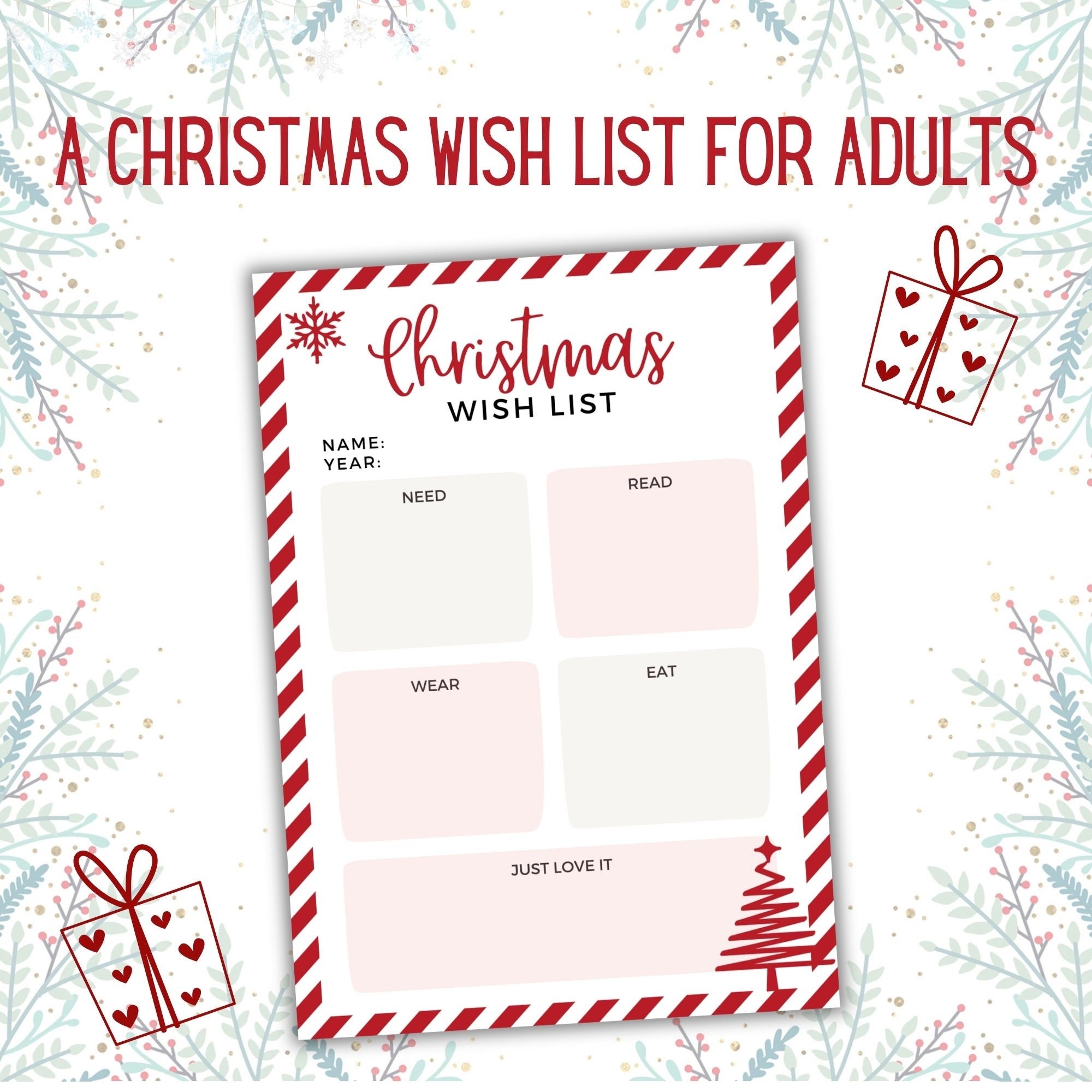 Christmas Wish List For Adults Printable PDF Christmas Wish
