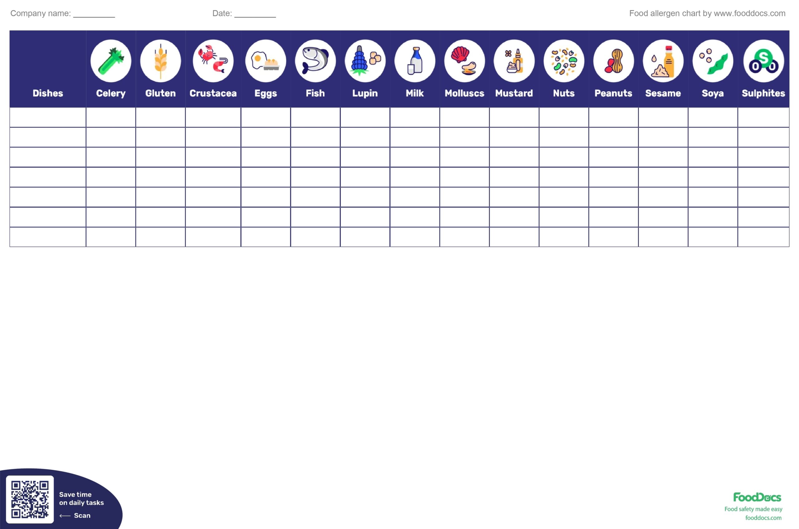 Food Allergen Chart Download Free Template