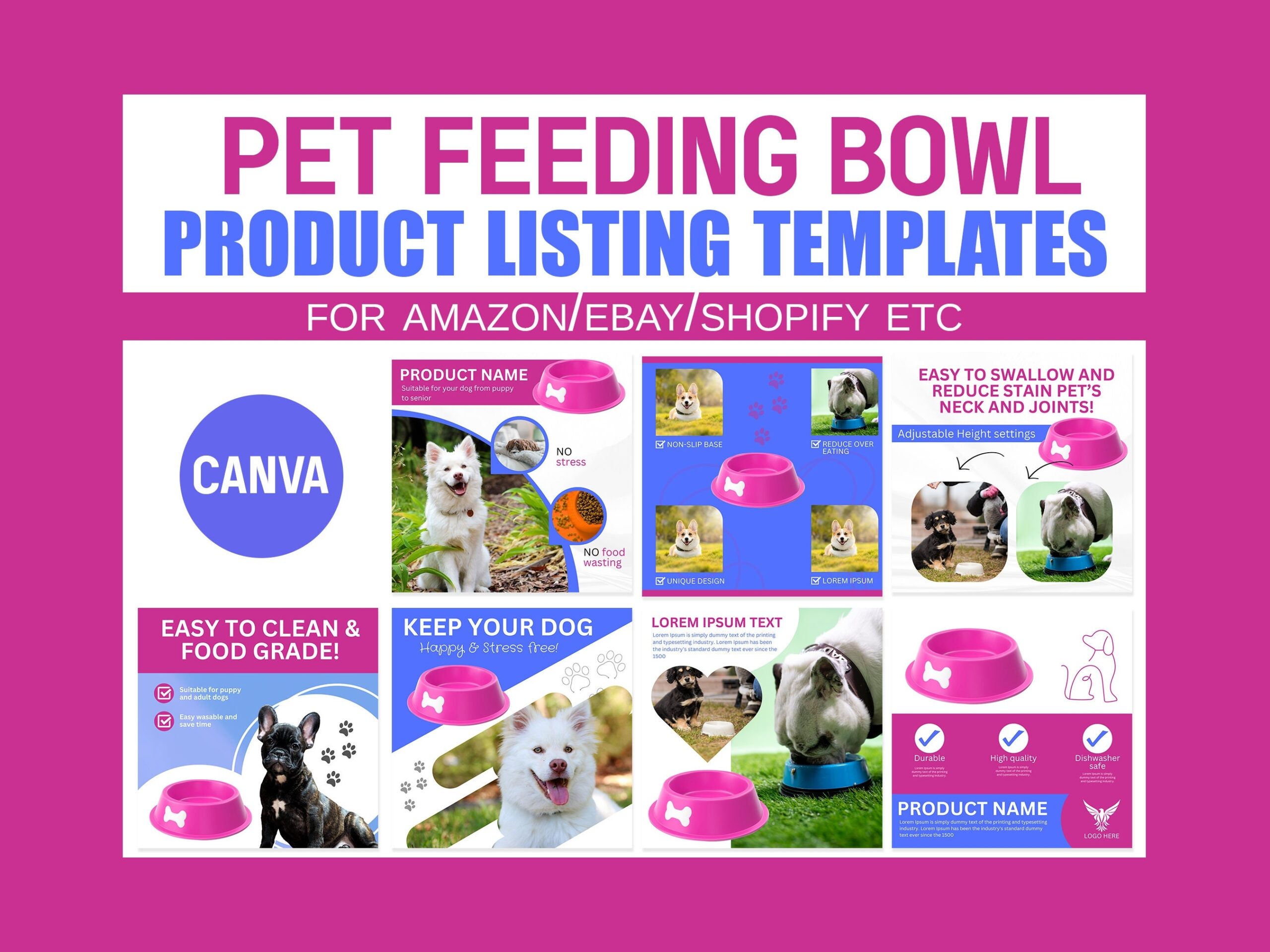 Amazon Listing Images Template Canva Templates Editable Amazon Templates Amazon Listing Images Amazon Pet Bowl Amazon Images Pet Bowl Etsy