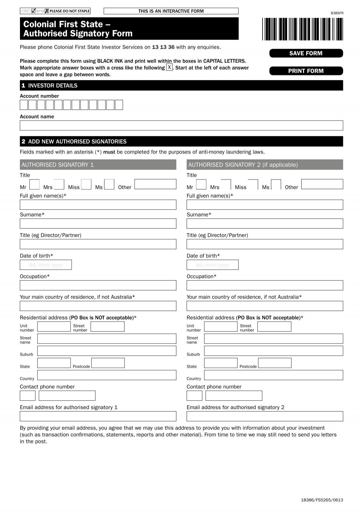 Colonial First State Authorised Signatory Form