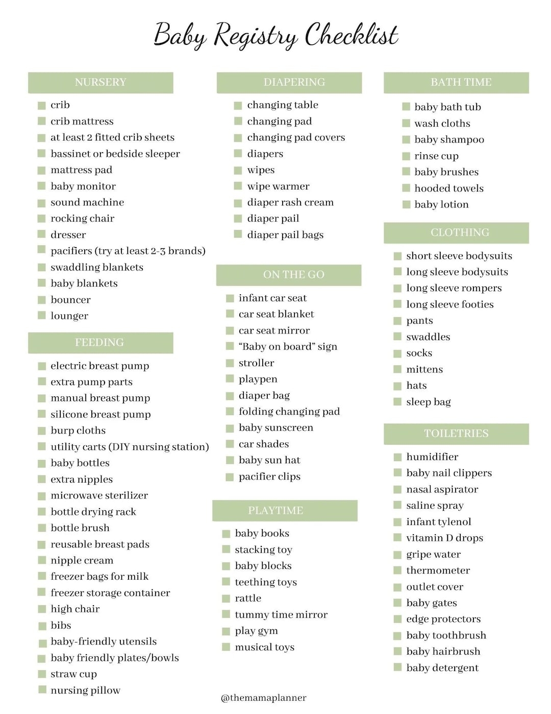 FREE BABY REGISTRY GUIDE PRINTABLE CHECKLIST