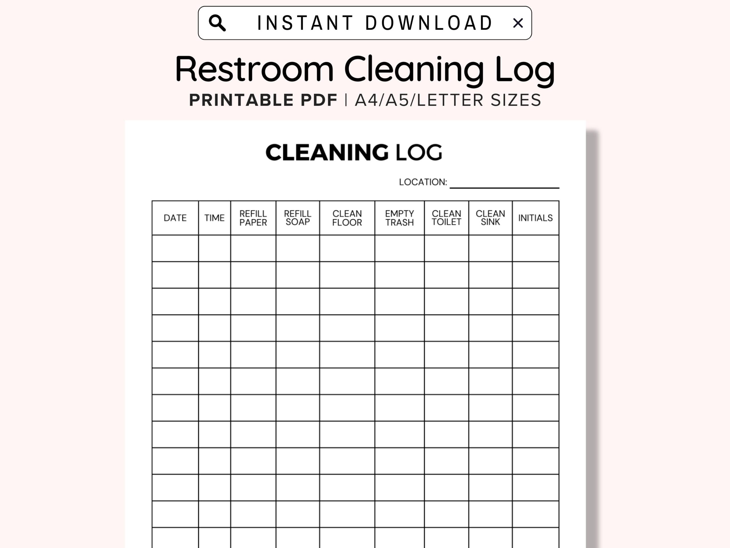 Weekly Bathroom Cleaning Chart Printable Restroom Cleaning Log For Business Bathroom Cleaning Log Bathroom Checklist Restroom Checklist Etsy