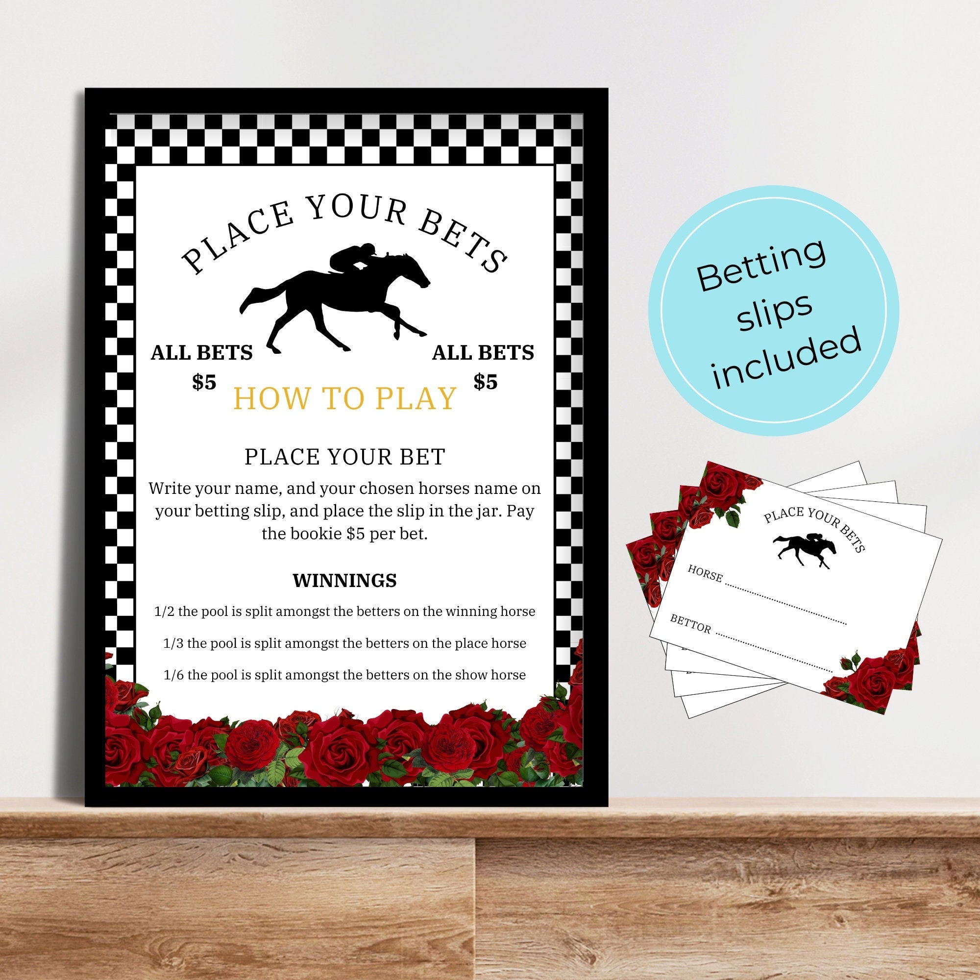 Set Of 6 Horse Race Bet Card Printable Betting Slip Place Your Bets Digital File Belmont Party Bettor Download Pool Etsy