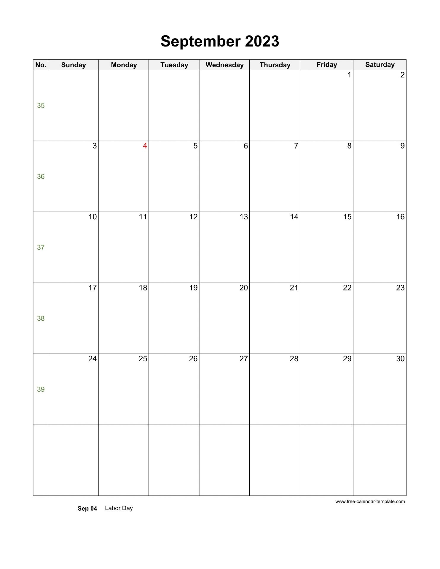 2023 September Calendar Blank Vertical Template Free calendar template