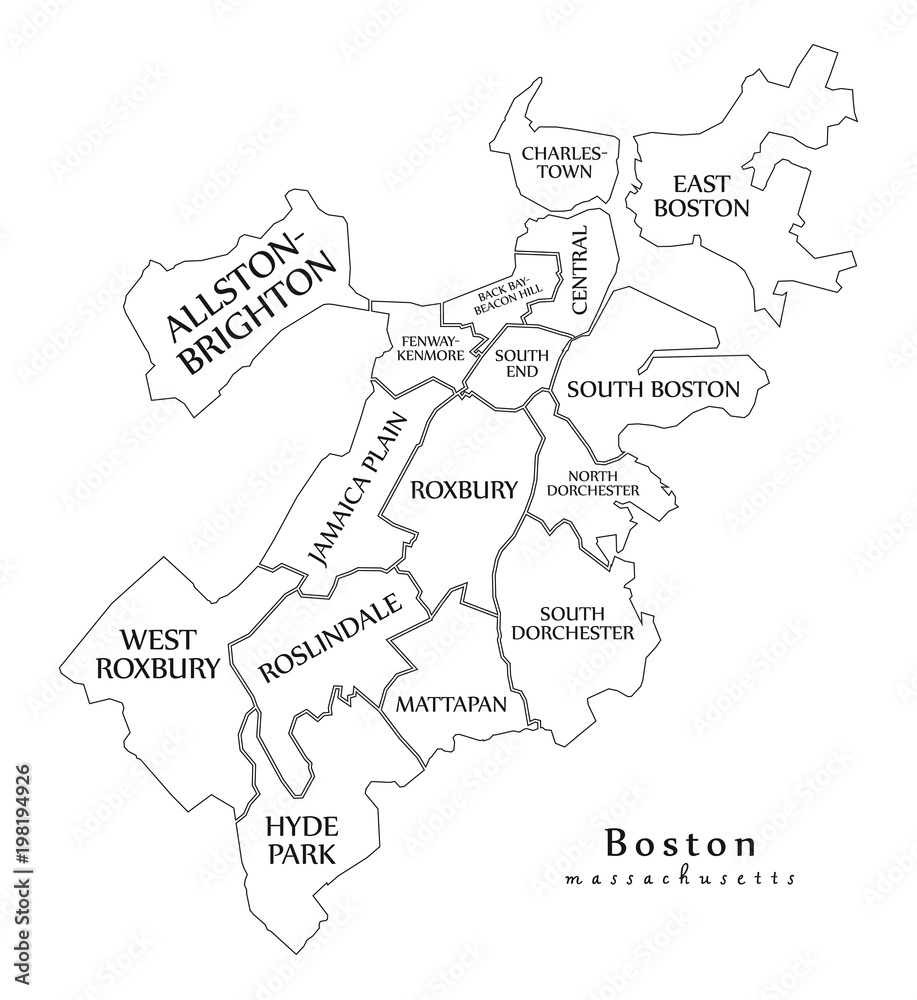 Boston Massachusetts Printable Map Excerpt This Stock Vector
