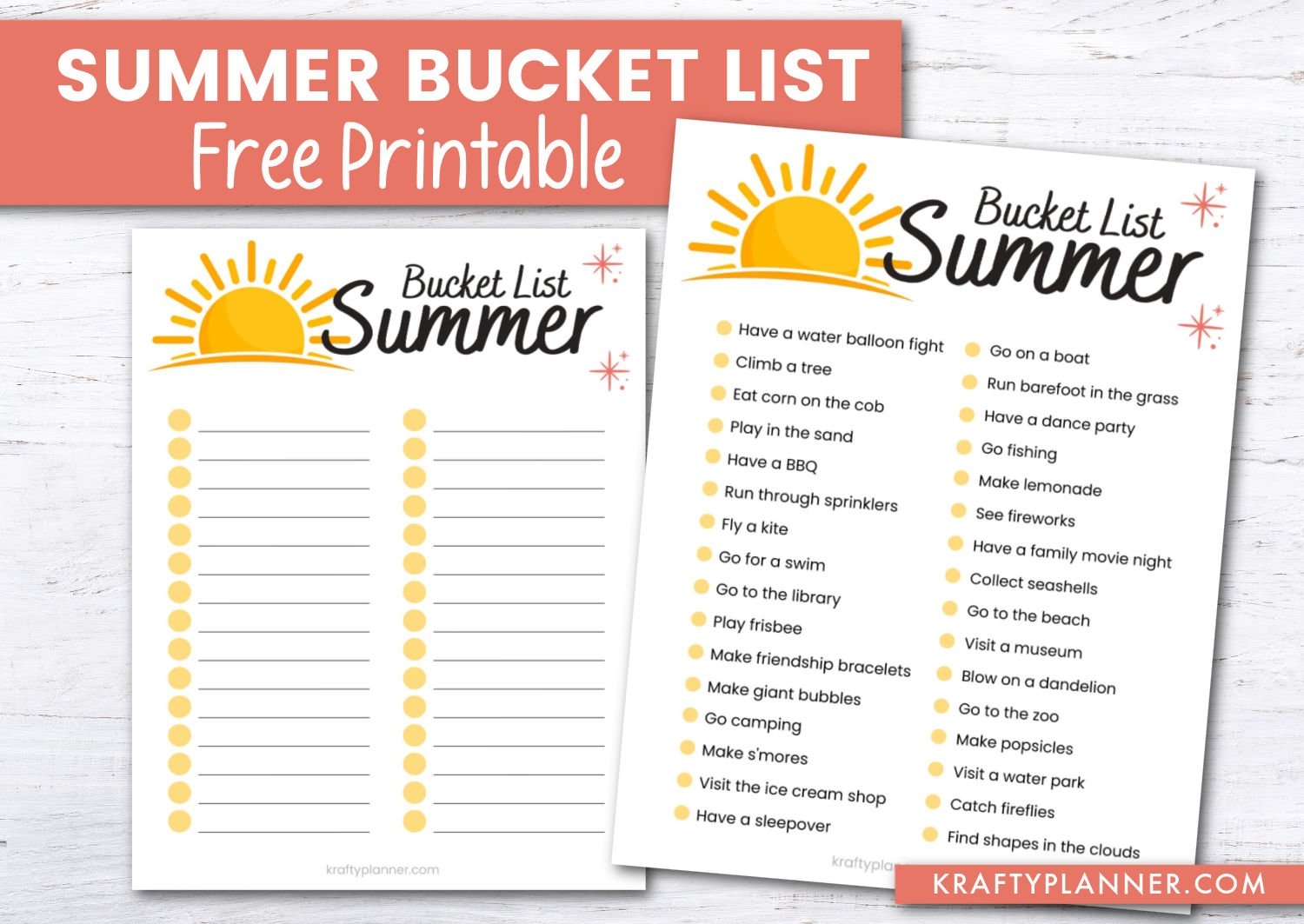 Free Printable Summer Bucket List Ideas Template Paper Trail Design