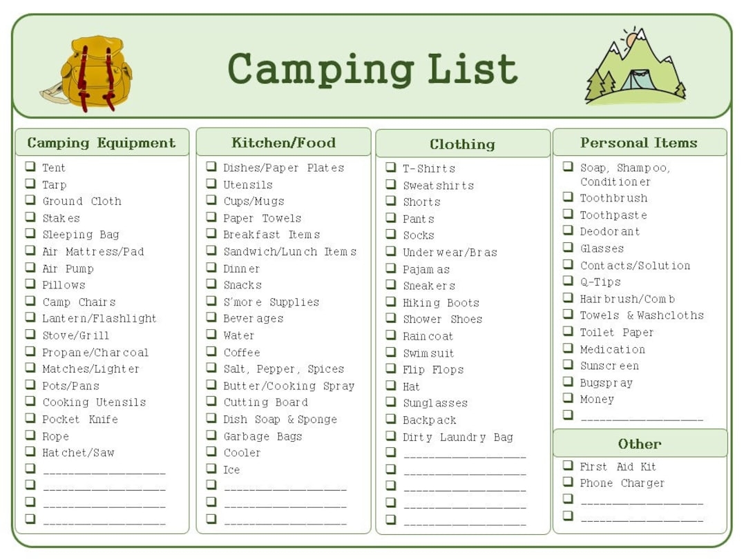 With your Camp Packing List Template in hand, you can confidently pack for your camping trip knowing you have everything you need. By staying organized and planning ahead, you can focus on creating lasting memories in the great outdoors. Happy camping!