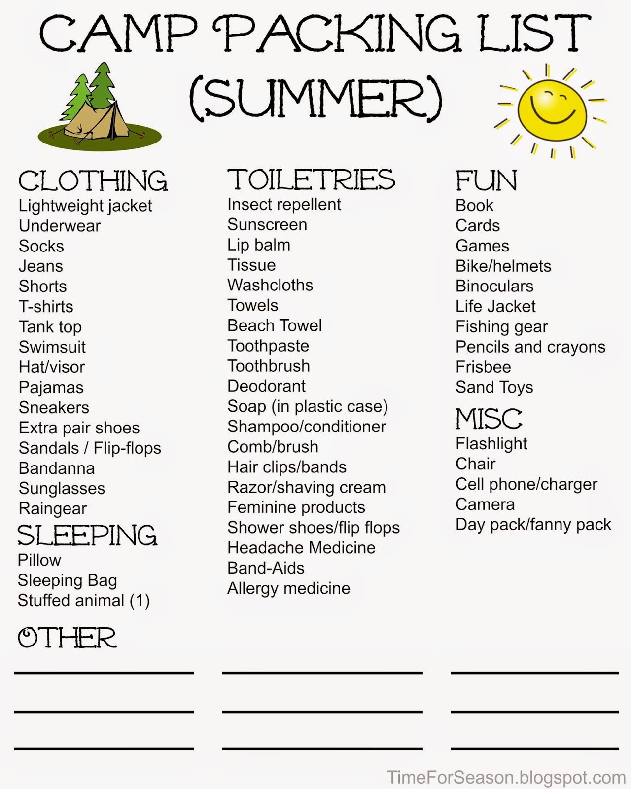 Summer Camp Packing List Free Google Docs Template Gdoc io