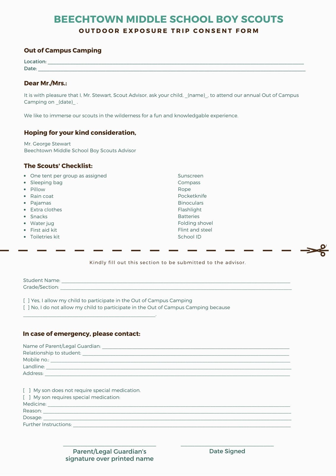30 Permission Slip Templates Field Trip Scouts Generic