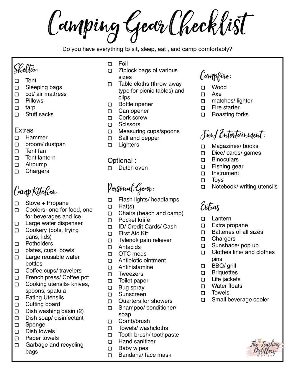 Camping Checklist Camping Essentials U0026 Meals Free Printables Monograms Design Tools Patterns U0026 DIY Projects