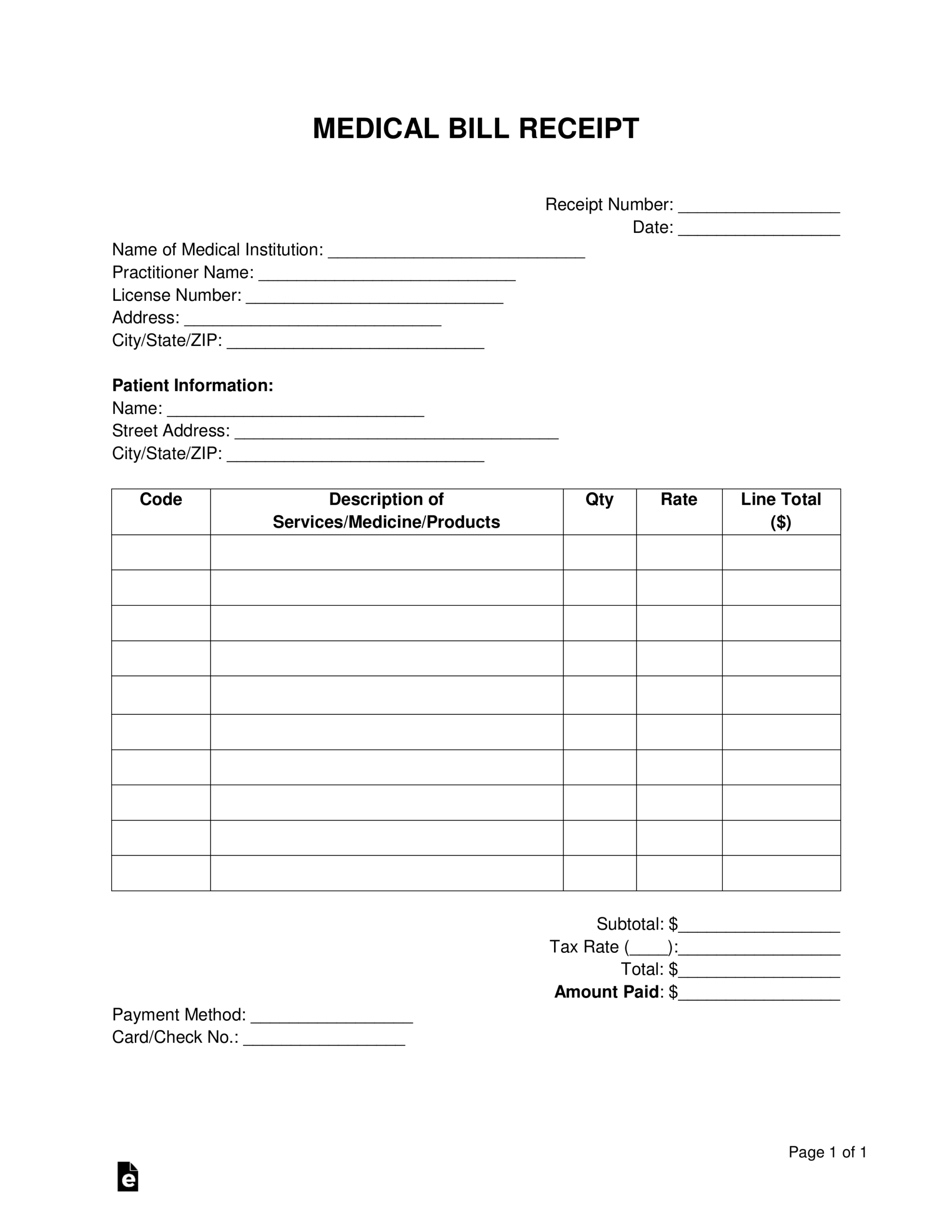 Hospital Charge Receipt Form Excel Template And Google Sheets File For Free Download Slidesdocs