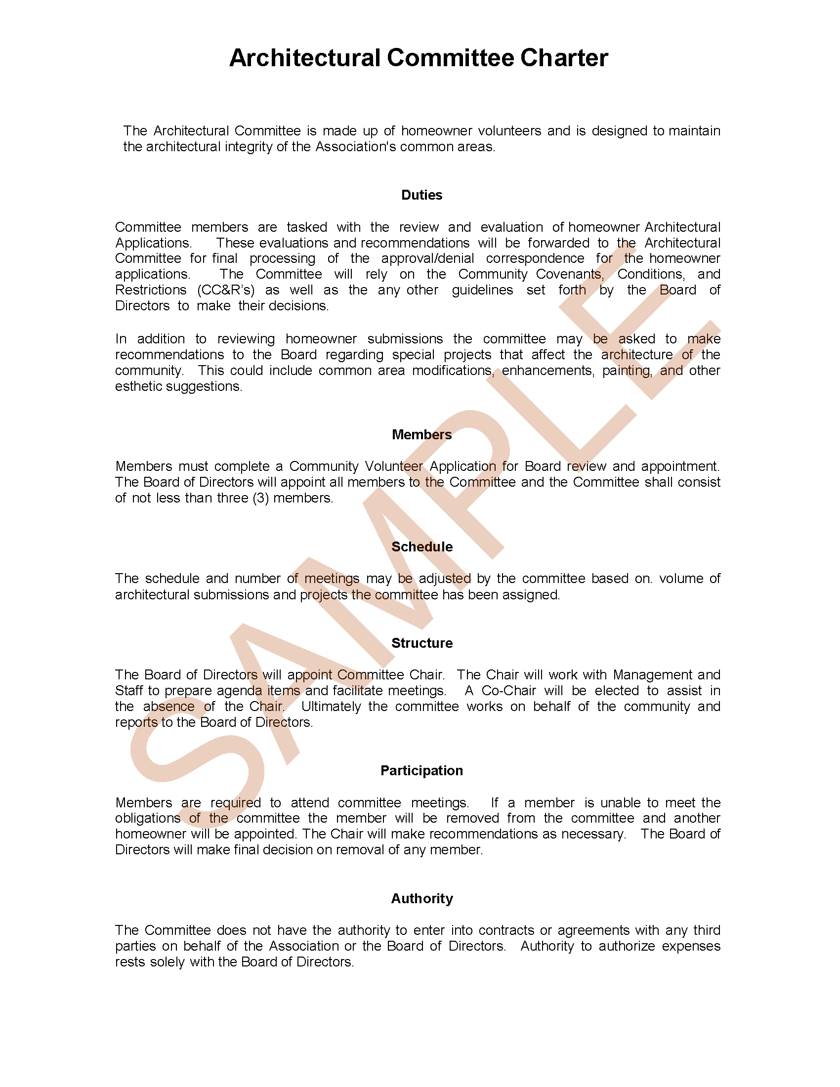 Architectural Committee Charter HOA Member Services