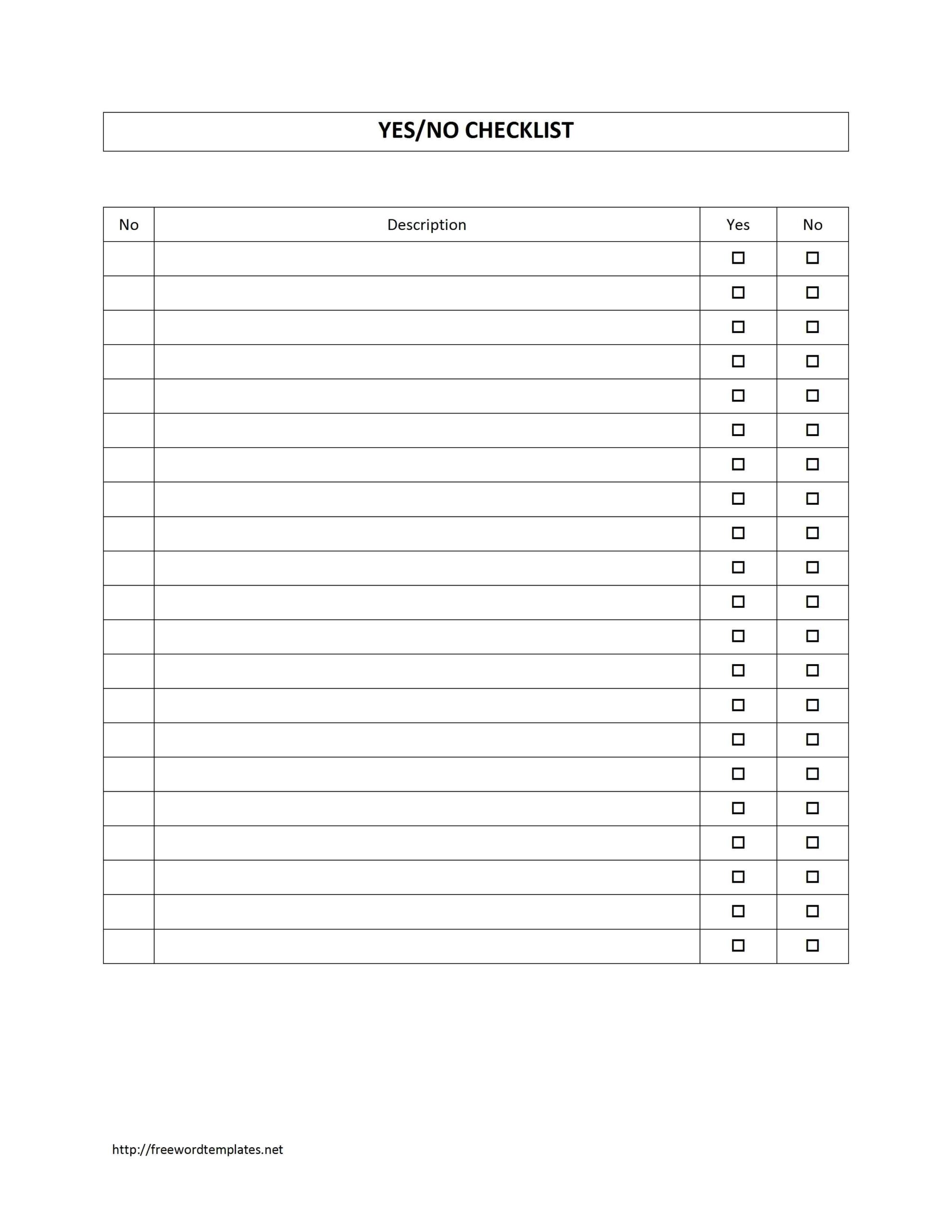 Yes No Checklist