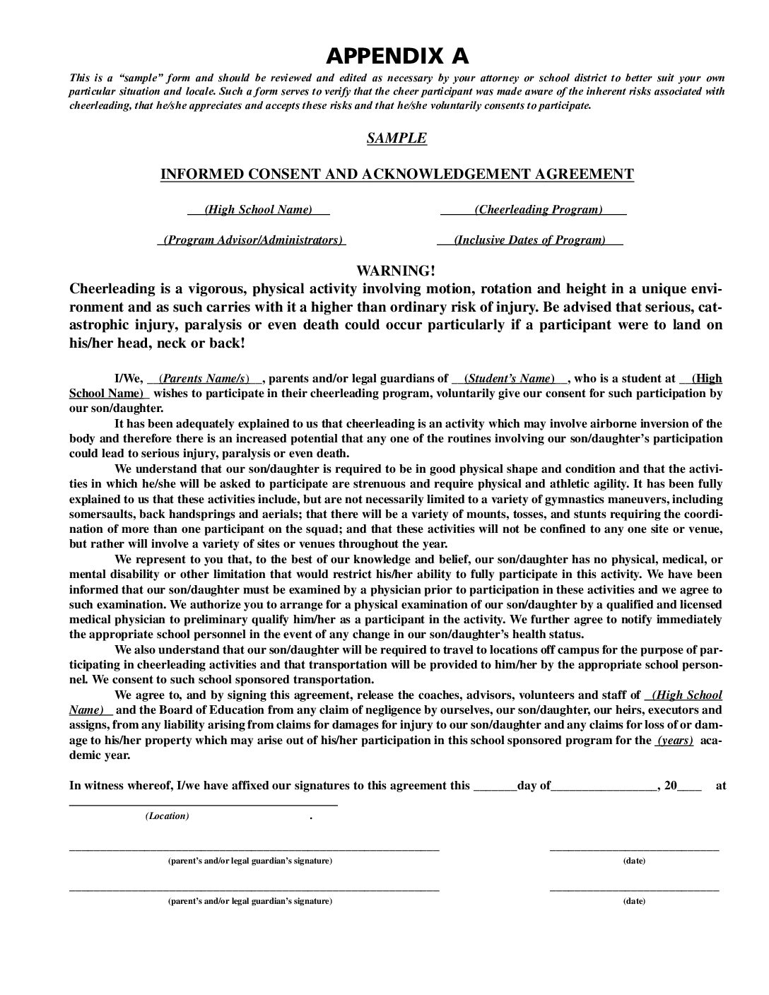 Sample Consent And Acknowledgement Agreement USA Cheer