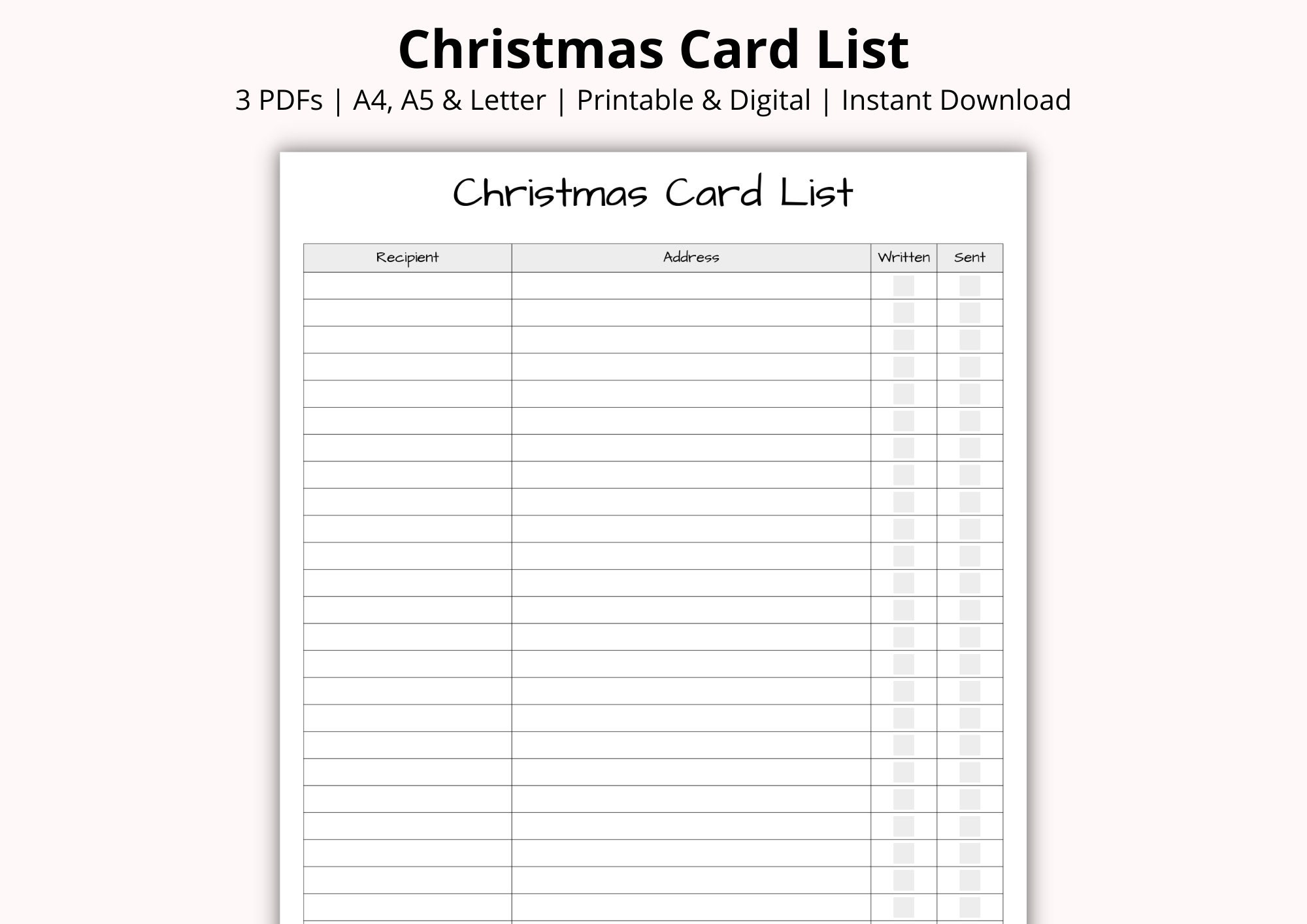 Christmas Card List Printable Checklist Holiday Card Tracker Christmas Planner Organizer Etsy UK