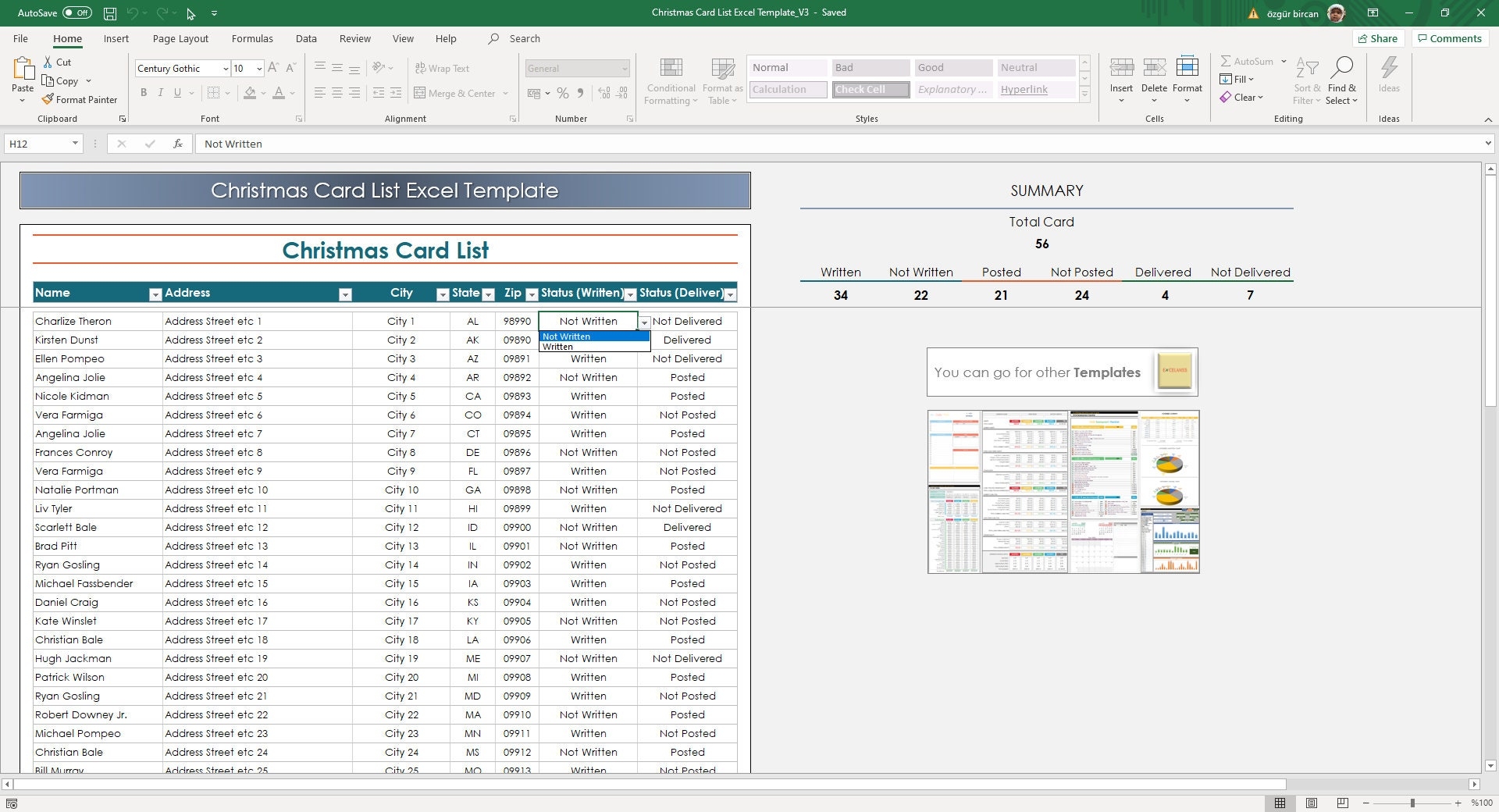 Christmas Card List Excel Template Christmas Card Tracker Christmas Card Planner Etsy