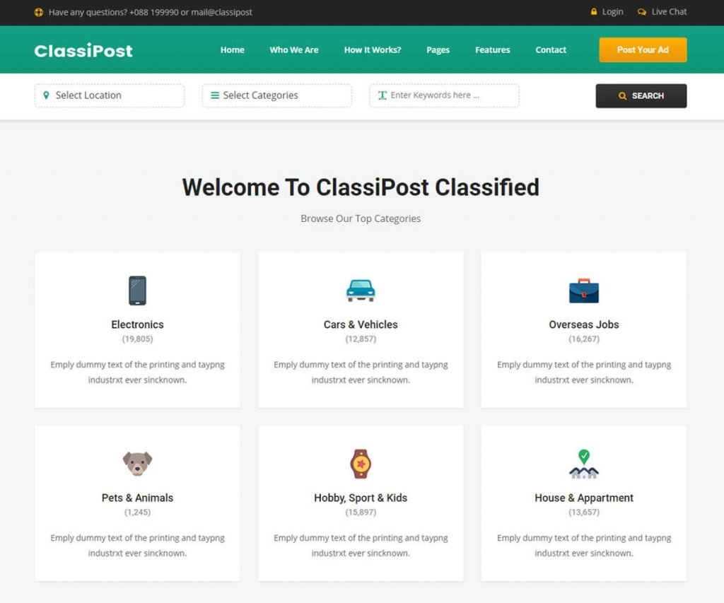 Looking for a sleek and professional template for your classified listing website? Look no further! Our Classified Listing Website Template is the perfect solution for all your needs.