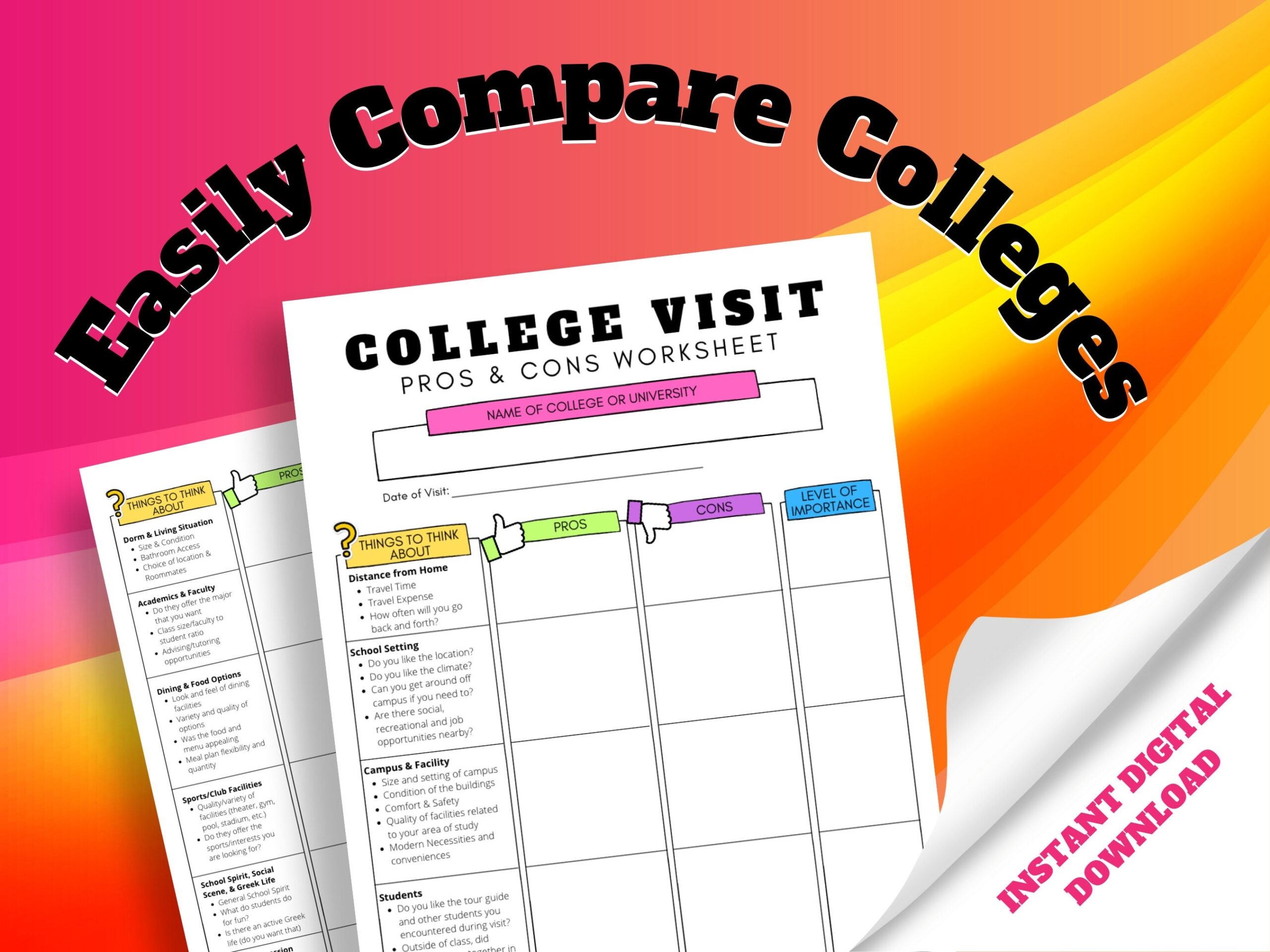College Tour Pros U0026 Cons Worksheet School Comparison College
