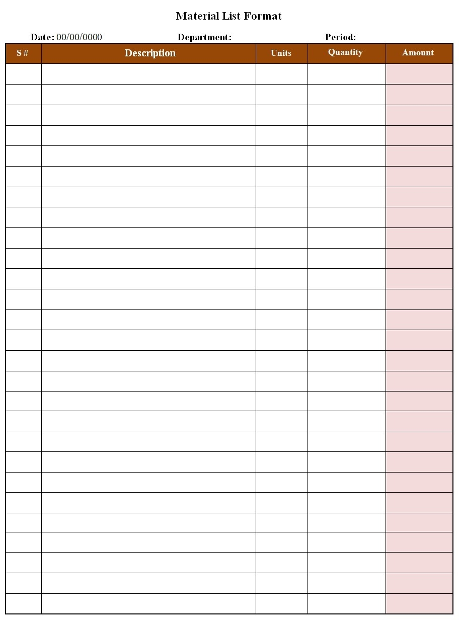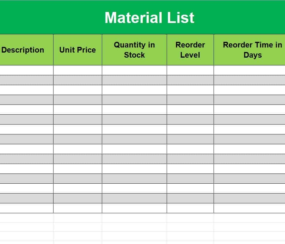 Simply download our template, fill in the necessary details, and start adding items to your list. You can categorize materials by type, quantity, and cost, making it easy to budget and plan accordingly. Say goodbye to chaos and hello to organization!