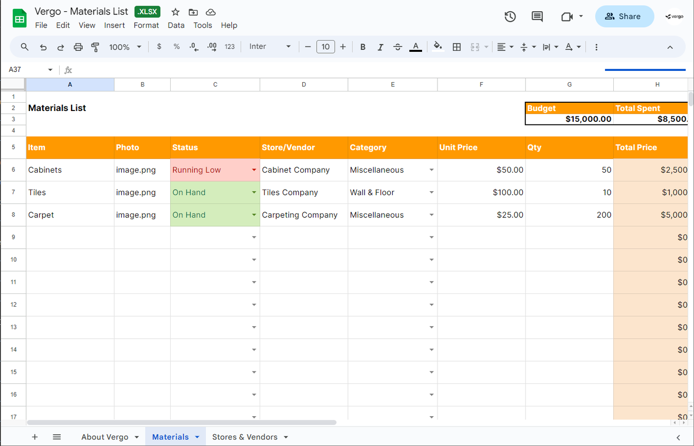 Our template is designed to help you stay on top of everything from lumber and drywall to nails and screws. No more frantically searching for that one item you forgot to buy at the hardware store – our template will ensure you have everything you need at your fingertips.