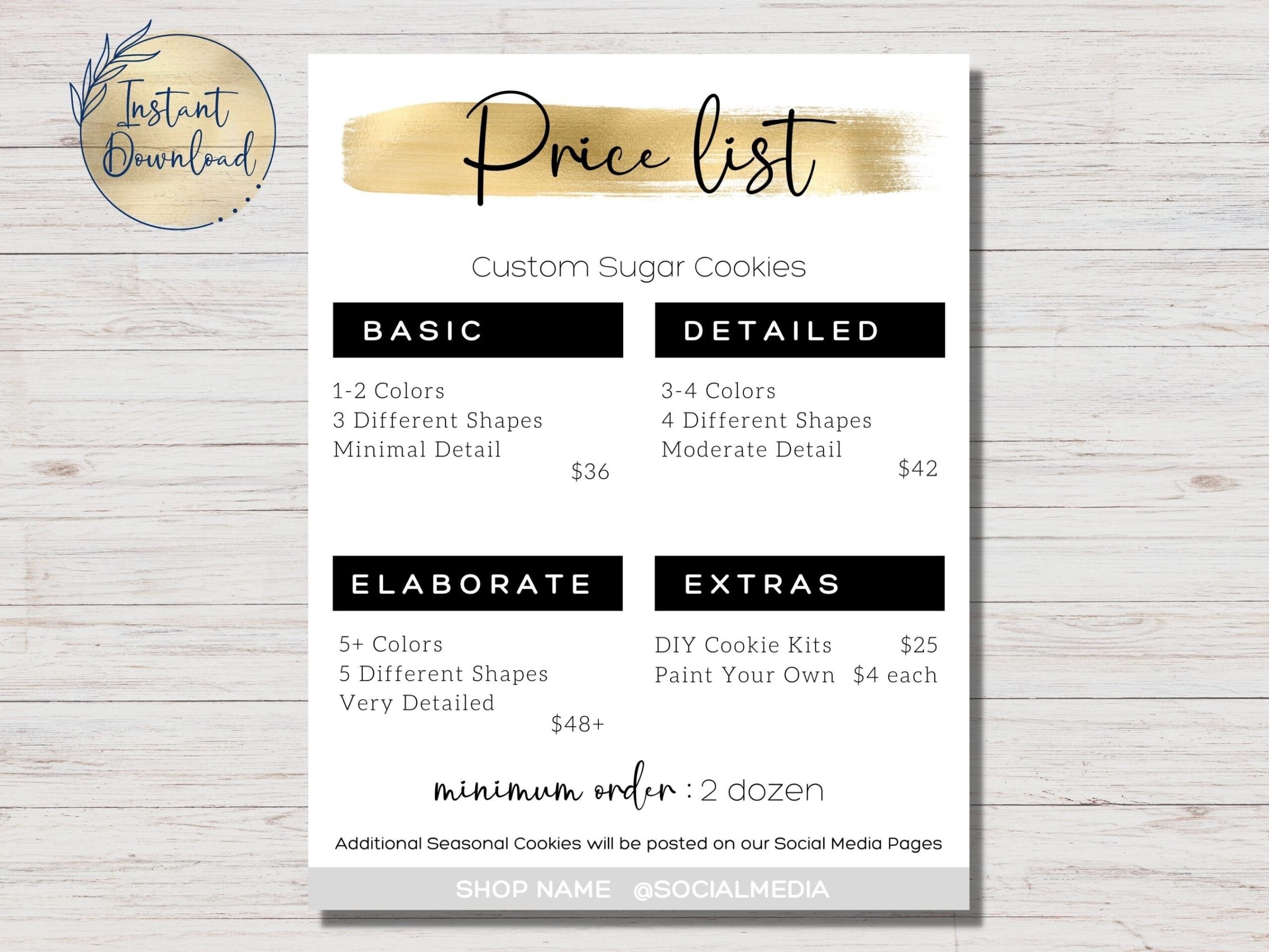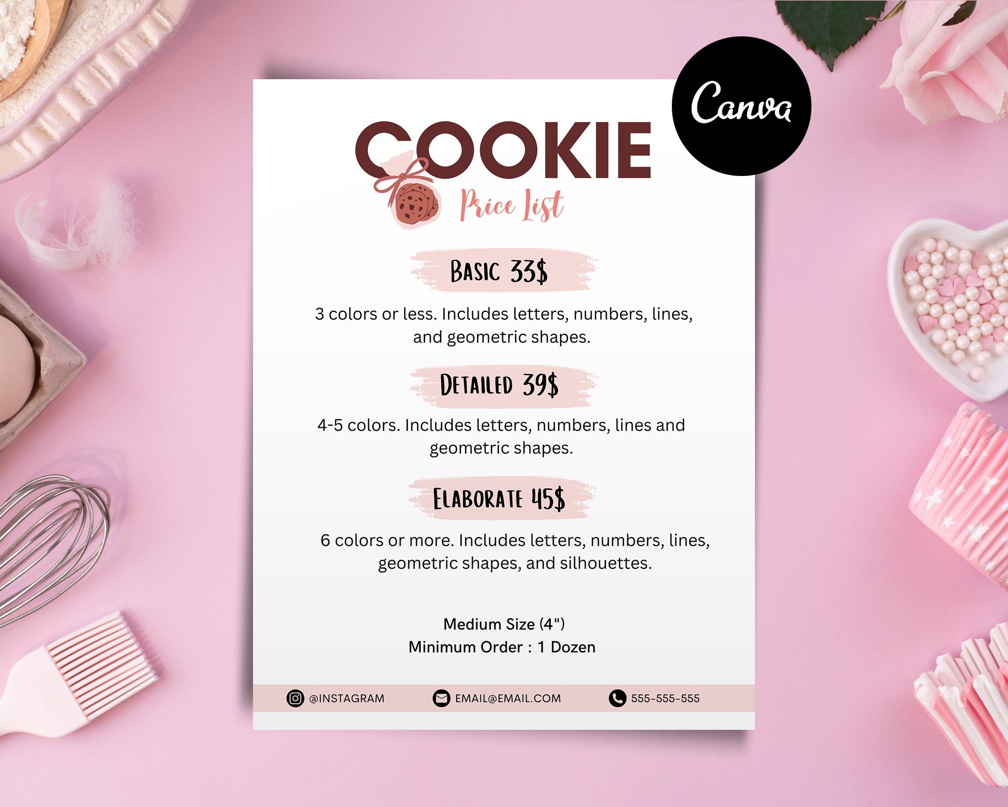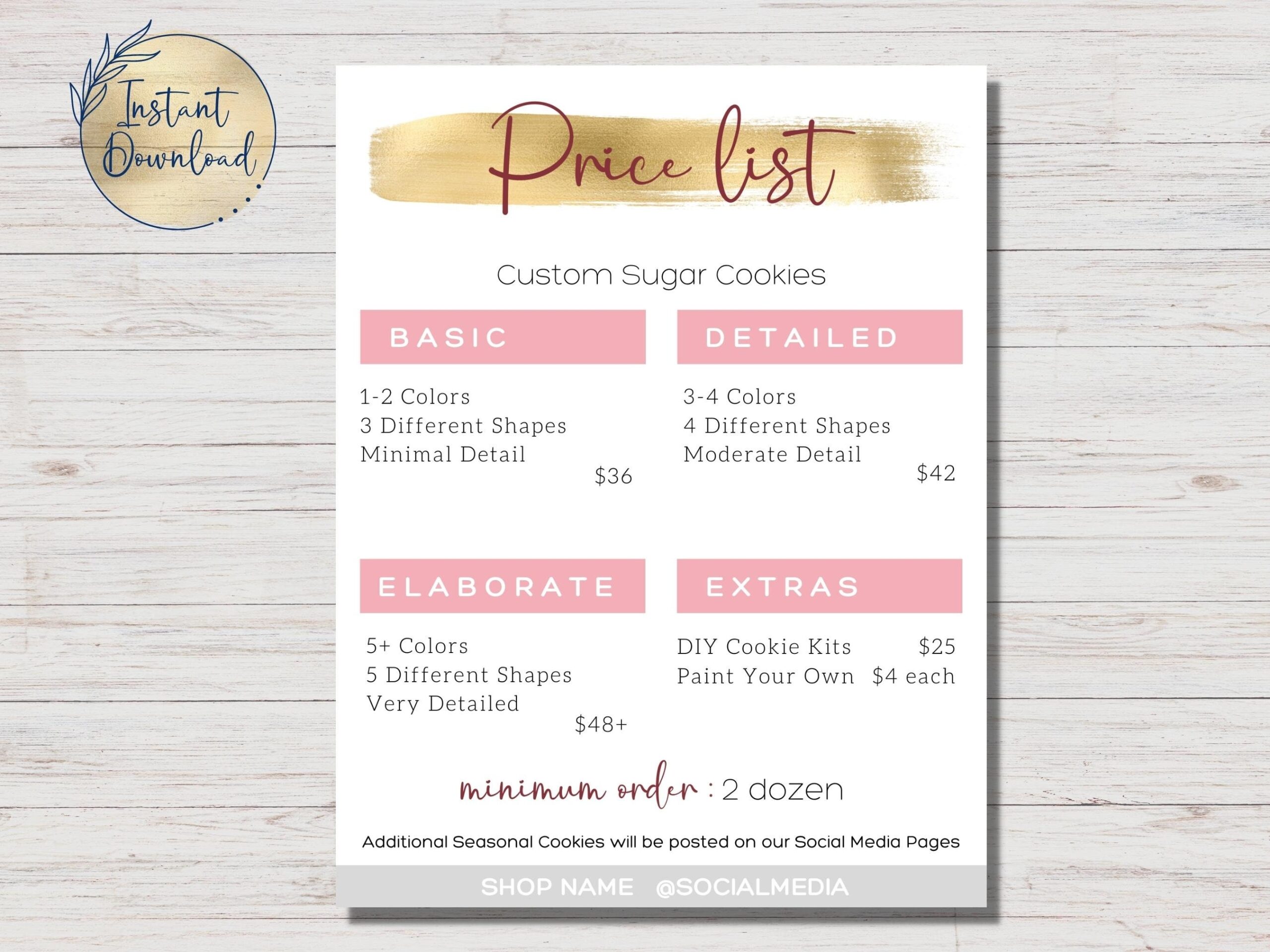Editable Price List Sugar Cookie Price List Canva Template Cookie Business Customizable Price List Personalized Cookie Price List Etsy