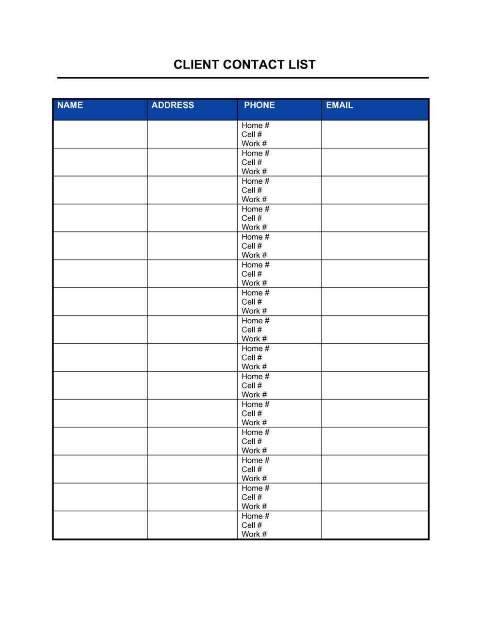 Client Contact List Template