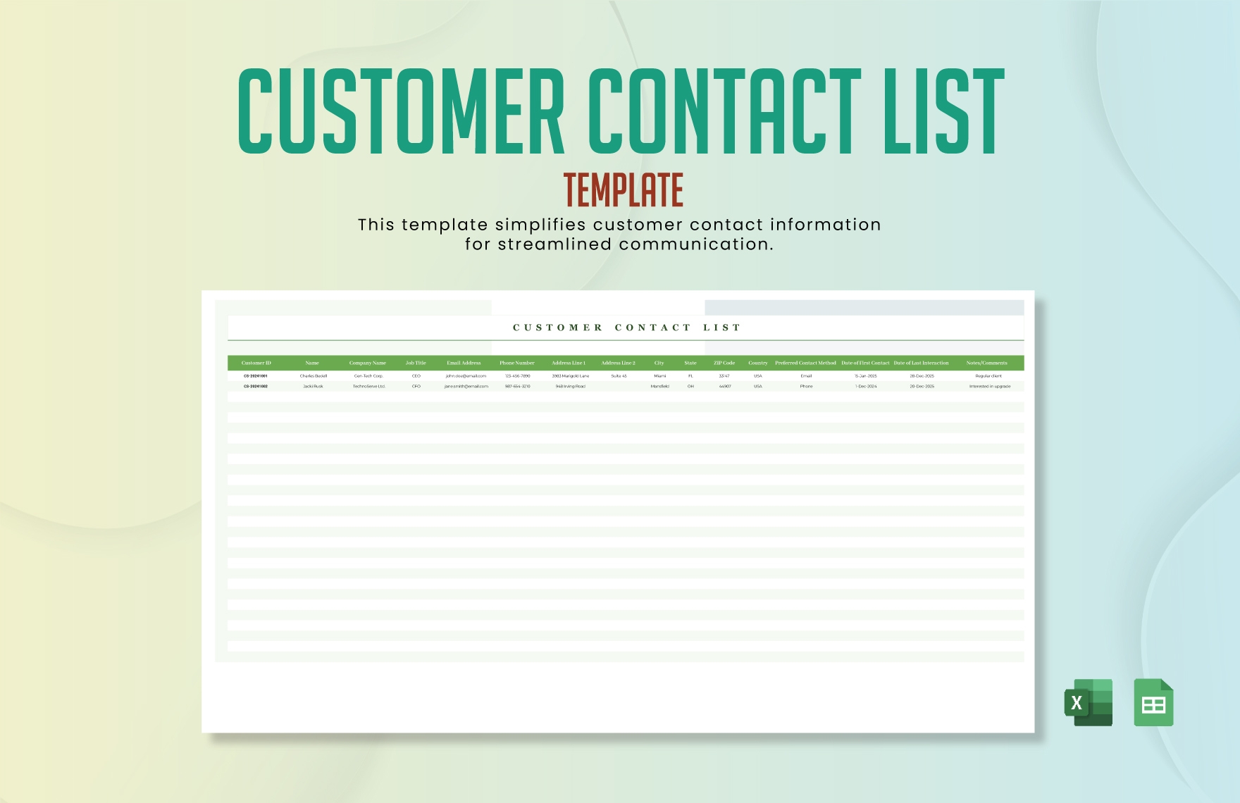 Customer Contact List Template In Excel Google Sheets Download