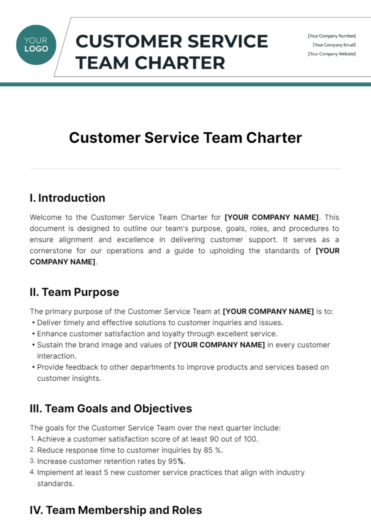 Free Customer Service Team Charter Template To Edit Online