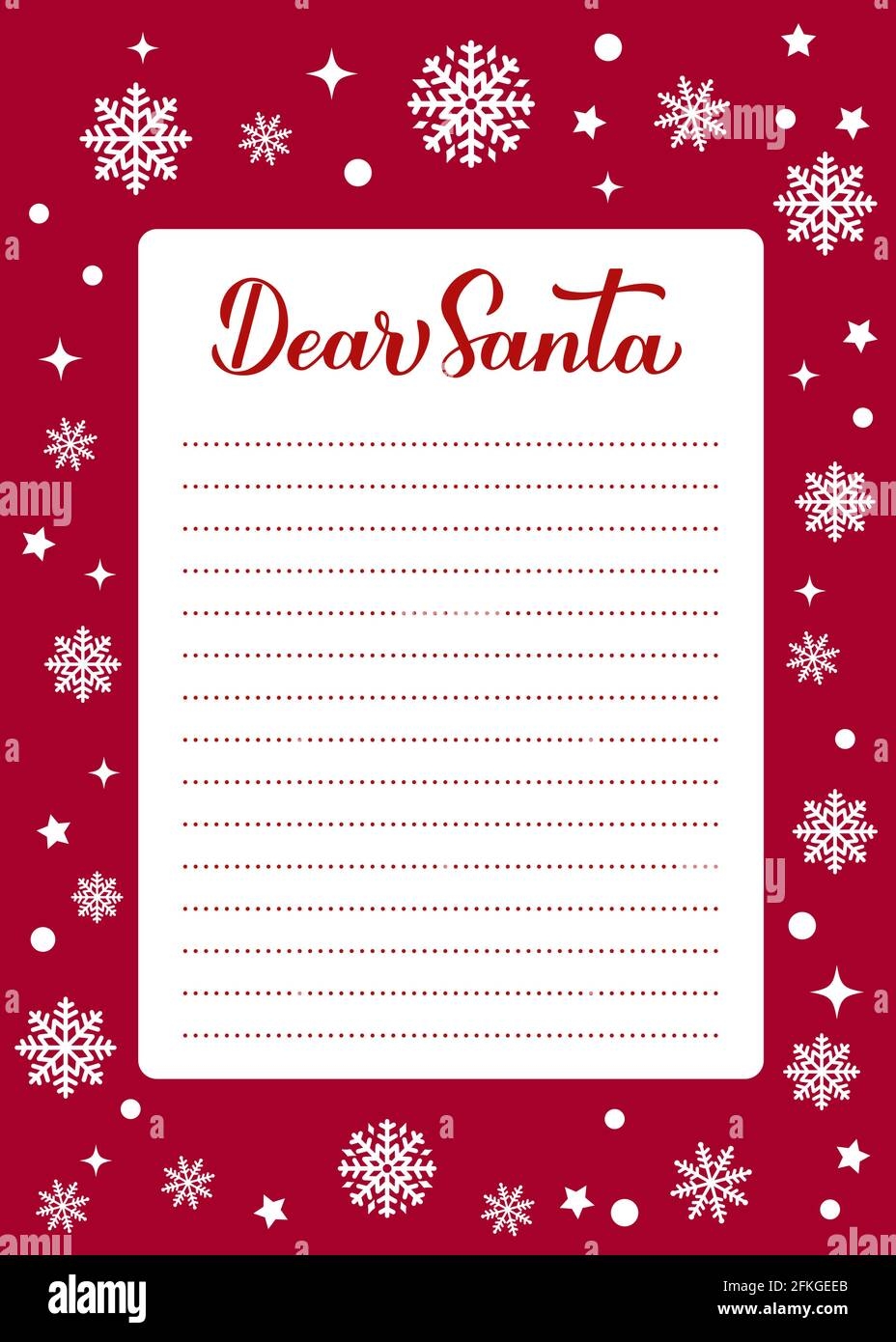 Christmas Wish List Card Dear Santa Calligraphy Hand Lettering On Red Background With Snowflakes Letter To Santa Claus Vector Template Stock Vector Image U0026 Art Alamy