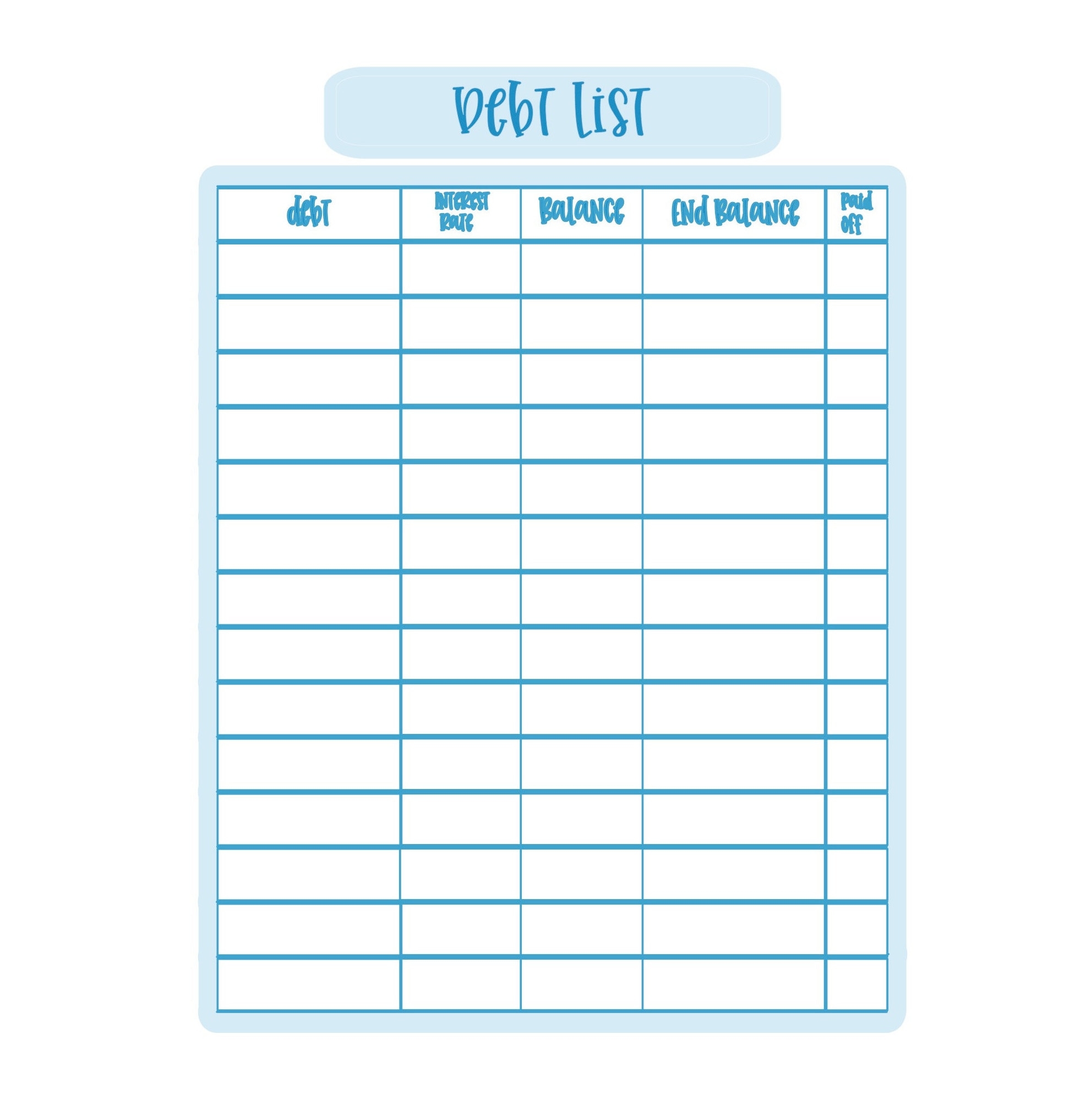 Digital Download Of Debt List Budgeting Sticker For Debt Snowball Debt Payoff Budgeting Kit Pay Bill Budget Bundle Bill List Etsy