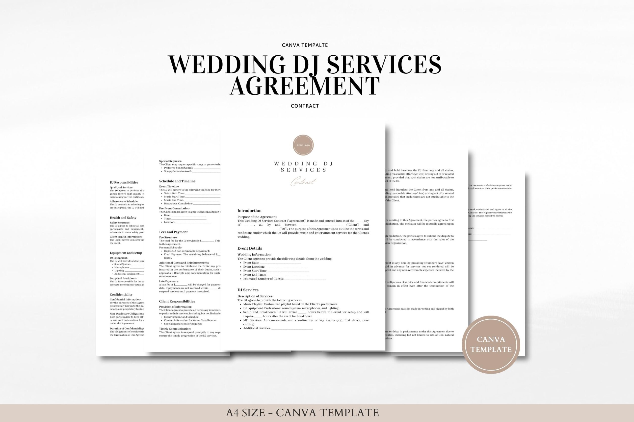 Wedding DJ Services Contract Professional And Customizable Digital Download Canva Template Edit In Canva