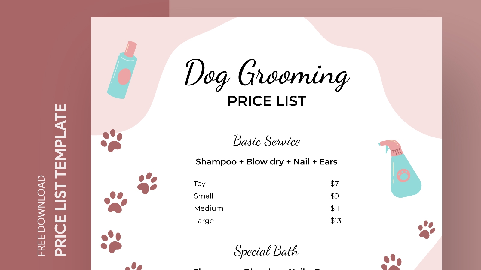 Dog Grooming Price List Template