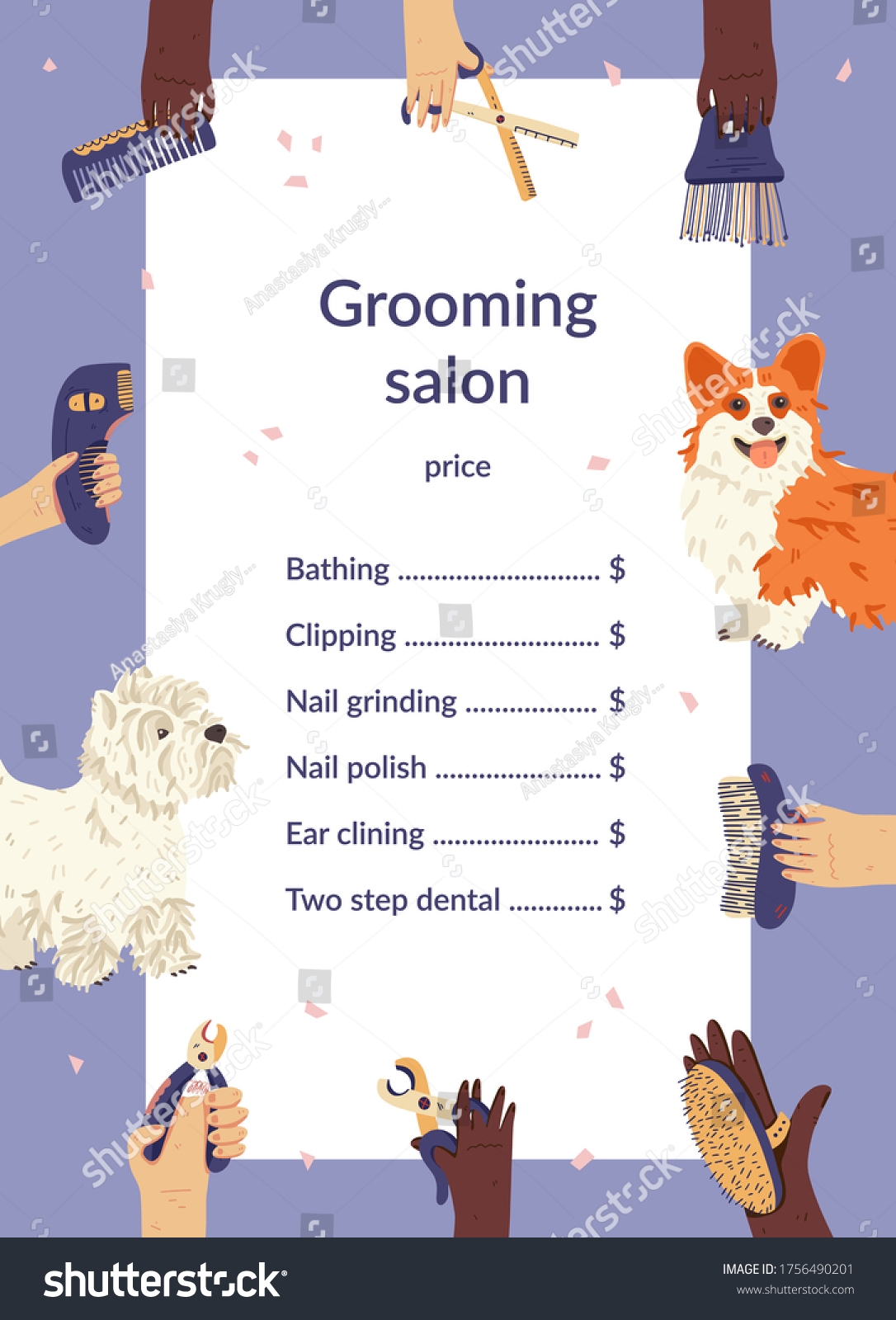 Vektor Stok Grooming Salon Price List Template Flat Tanpa Royalti 1756490201 Shutterstock