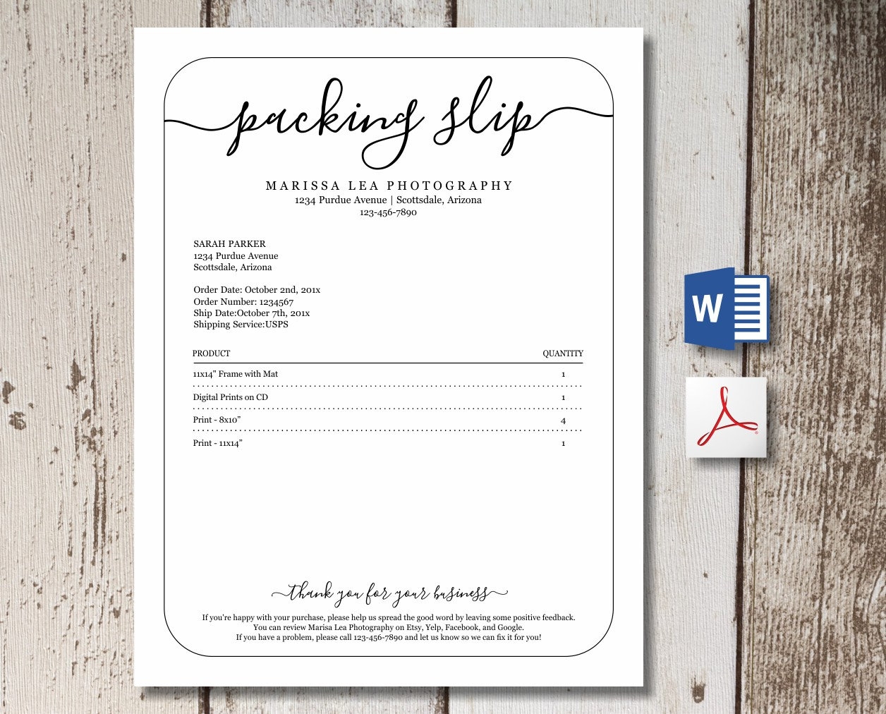 Printable Packing Slip Template W Review Us Request Word PDF
