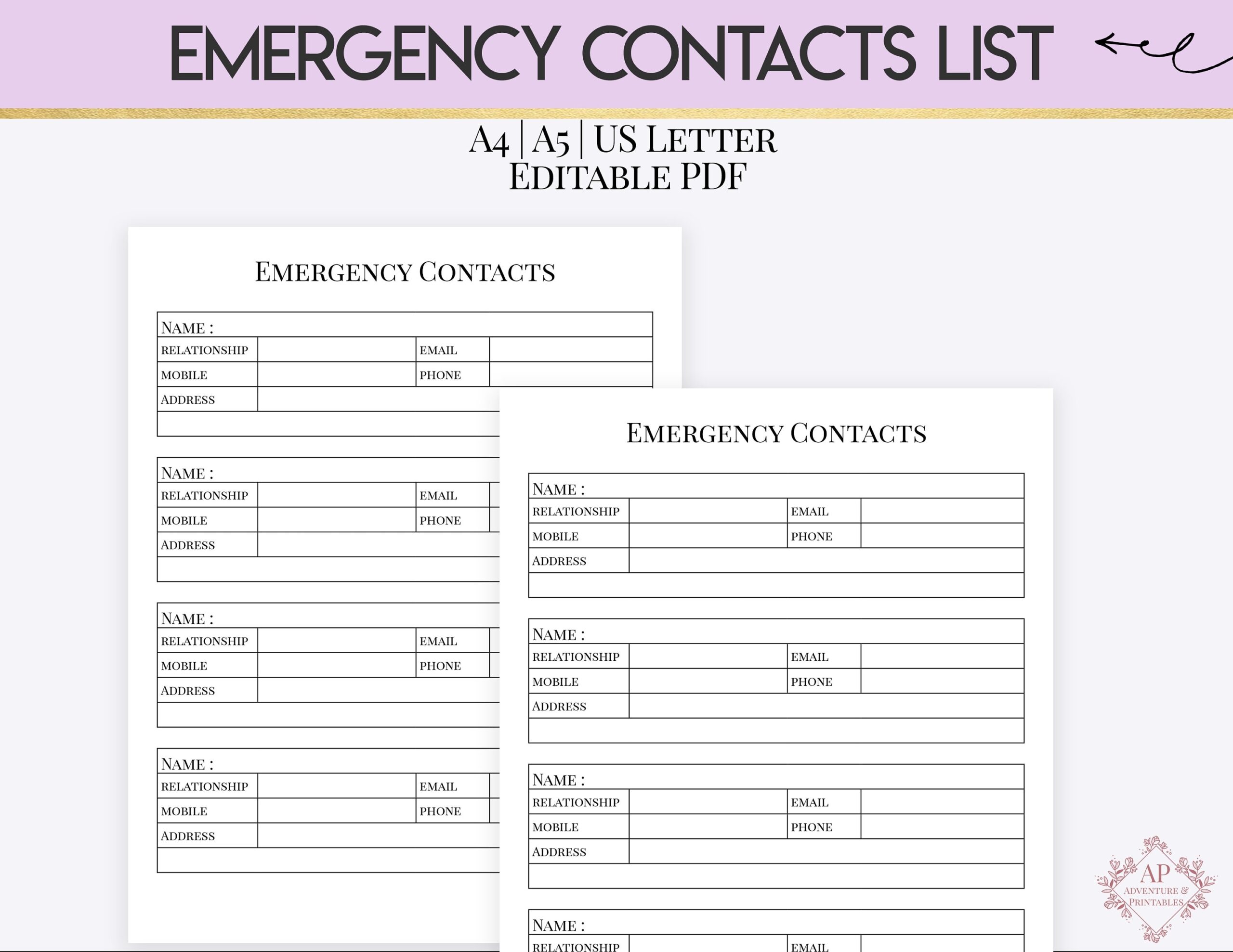 Emergency Contacts List Editable Emergency Information List Etsy