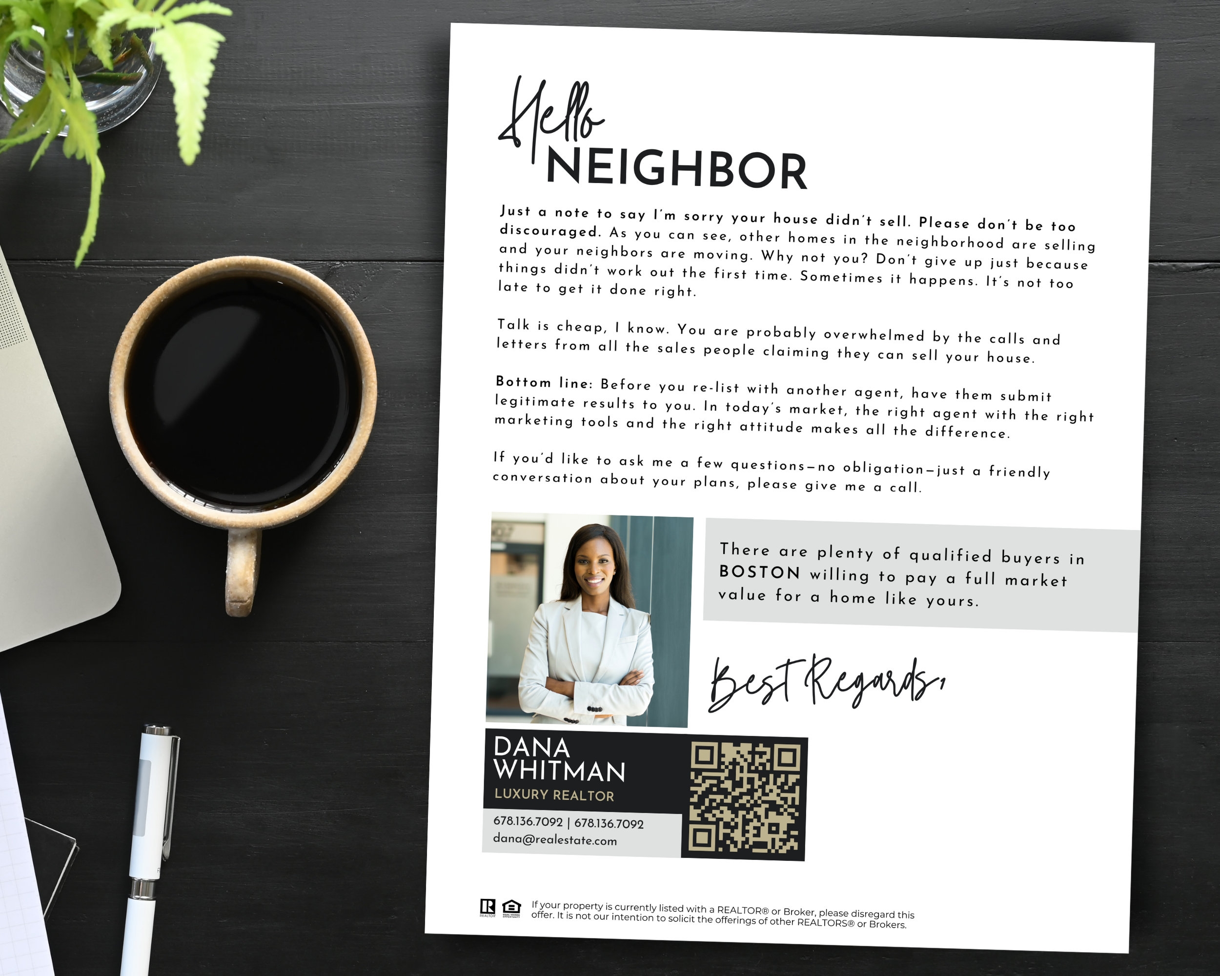 Expired Listing FSBO Letter Expired Listing Real Estate Real Estate Marketing Canva Templates Printable Hello Neighbor Farming Flyer