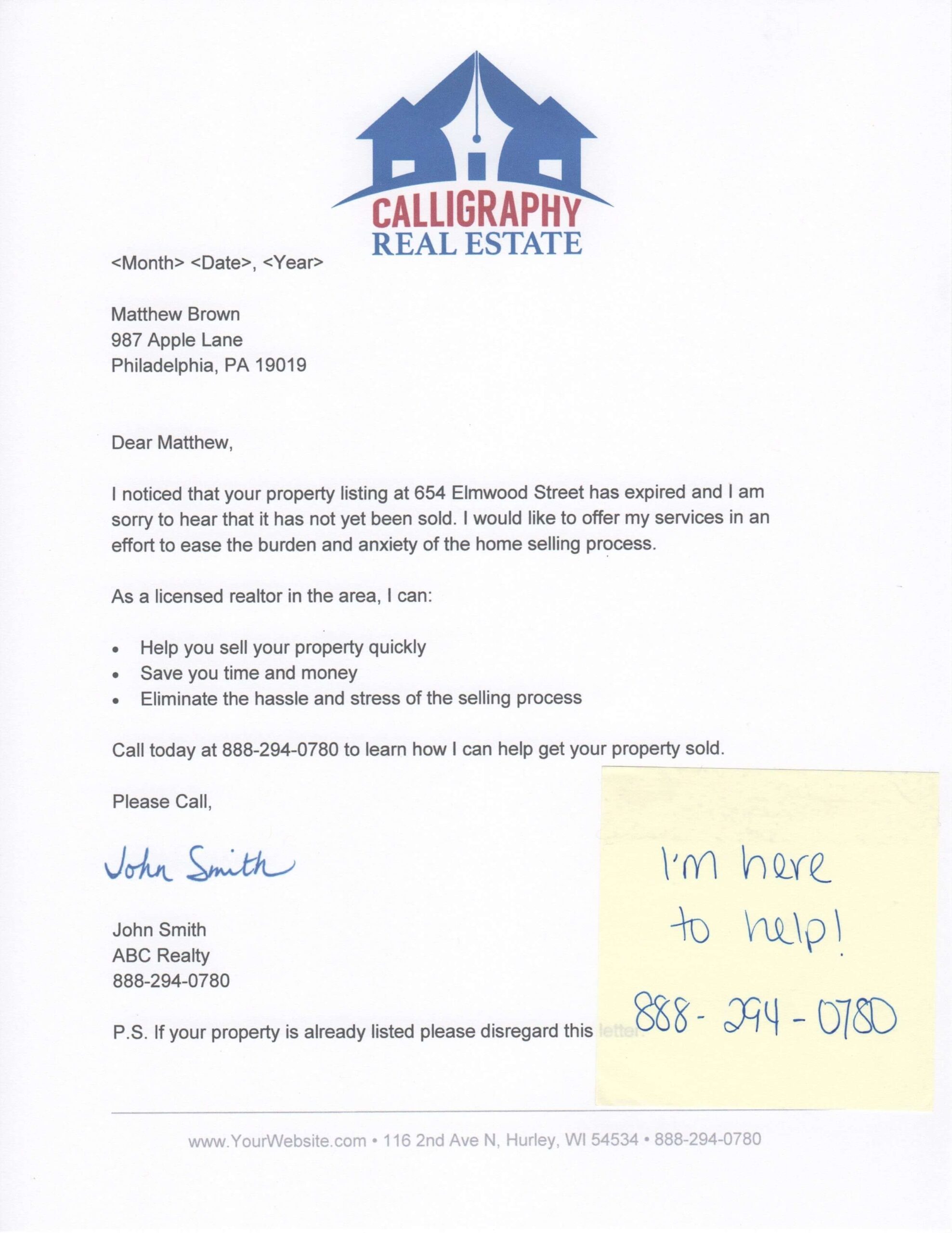 Expired Listing Real Estate Signature Letter Yellow Letters Complete