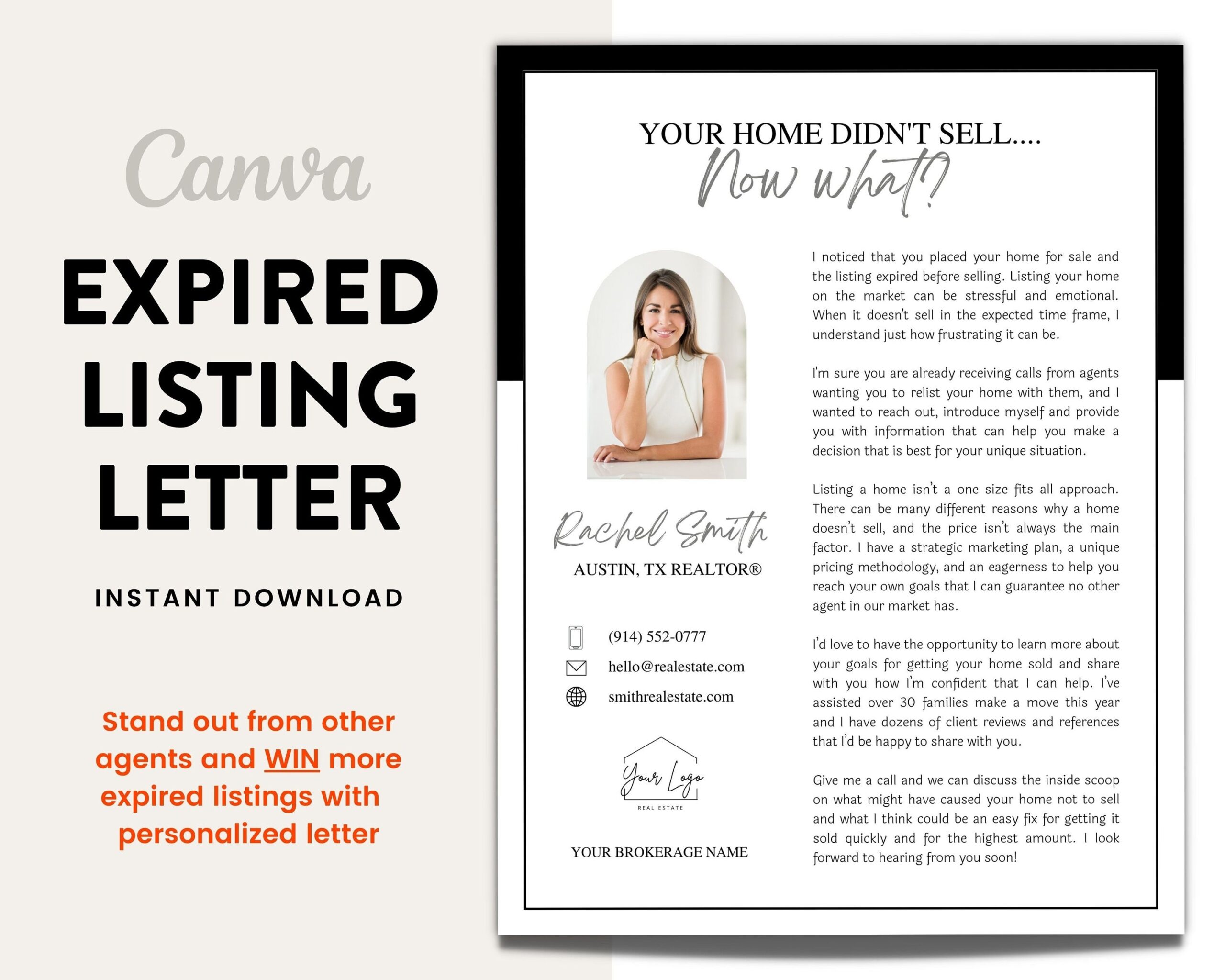 Expired Listing Letter Real Estate Letter Template Real Estate Marketing Expired Listing Prospecting Letter D1 INSTANT CANVA DOWNLOAD