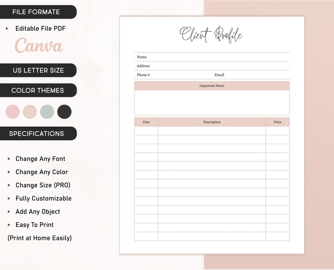 Client Profile Template Editable Business Client Profile Printable Client Information Log Customer Profile Info Sheet Or Form Workflow Etsy