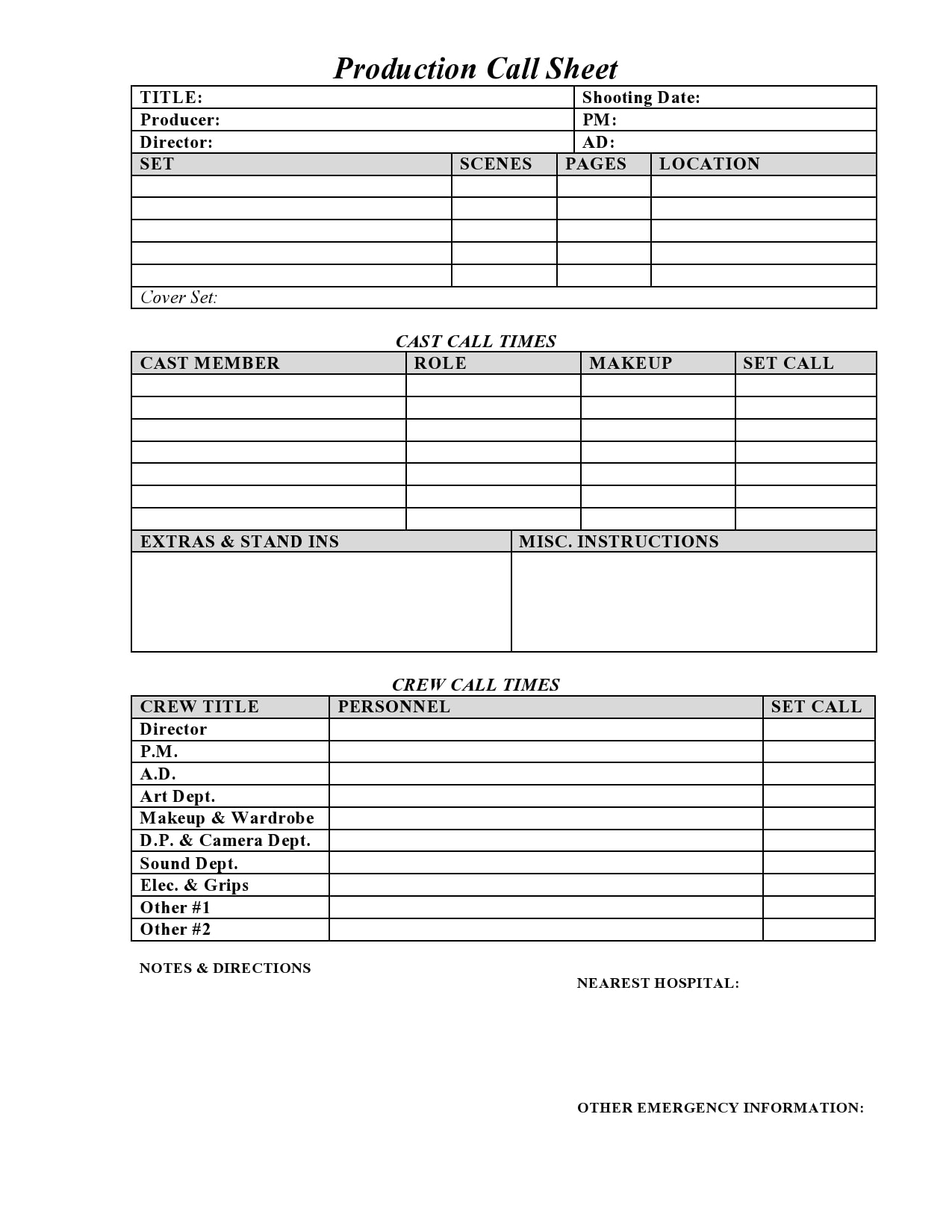 39 Simple Call Sheet Templates FREE TemplateArchive
