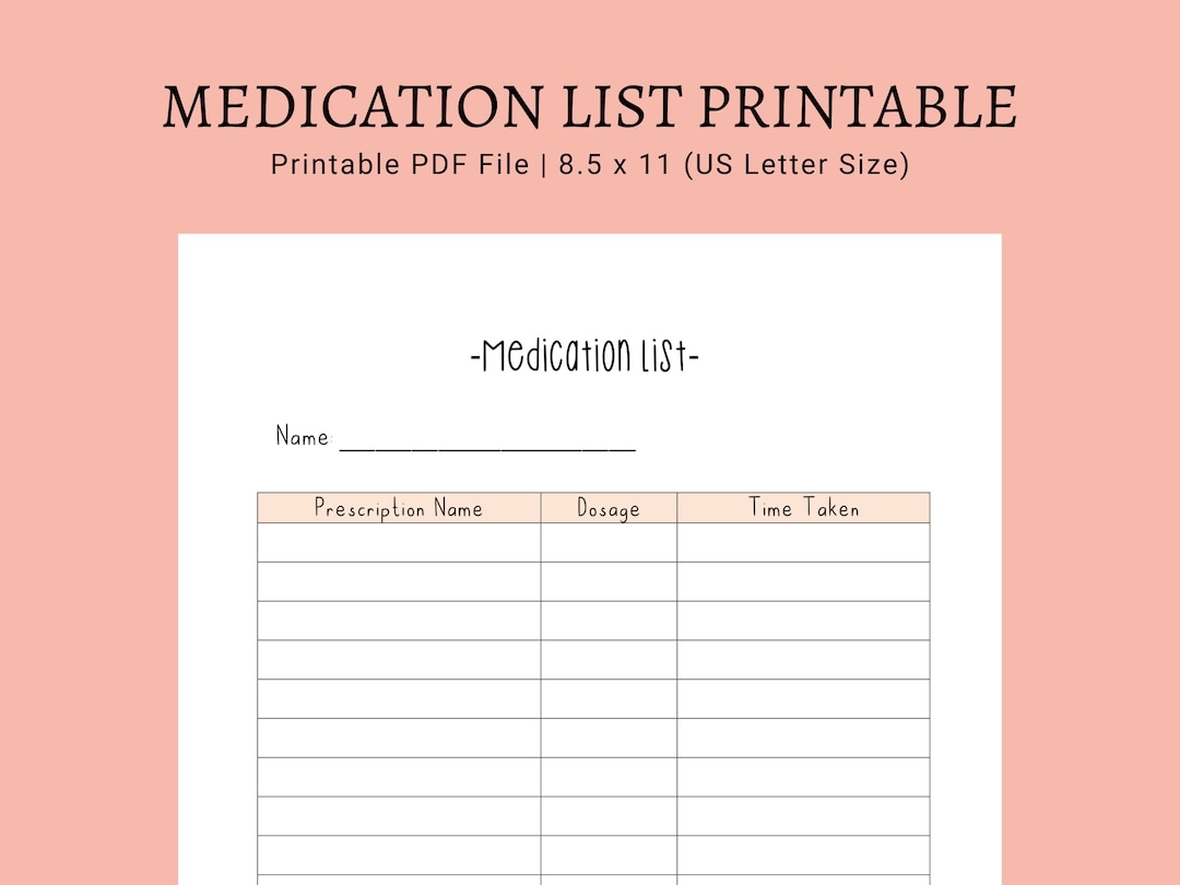 Medication List Printable Printable PDF List Medication Tracker Etsy