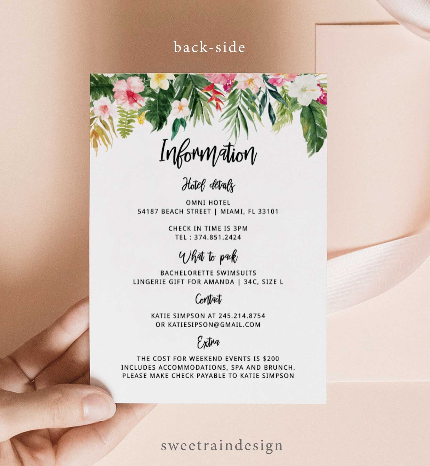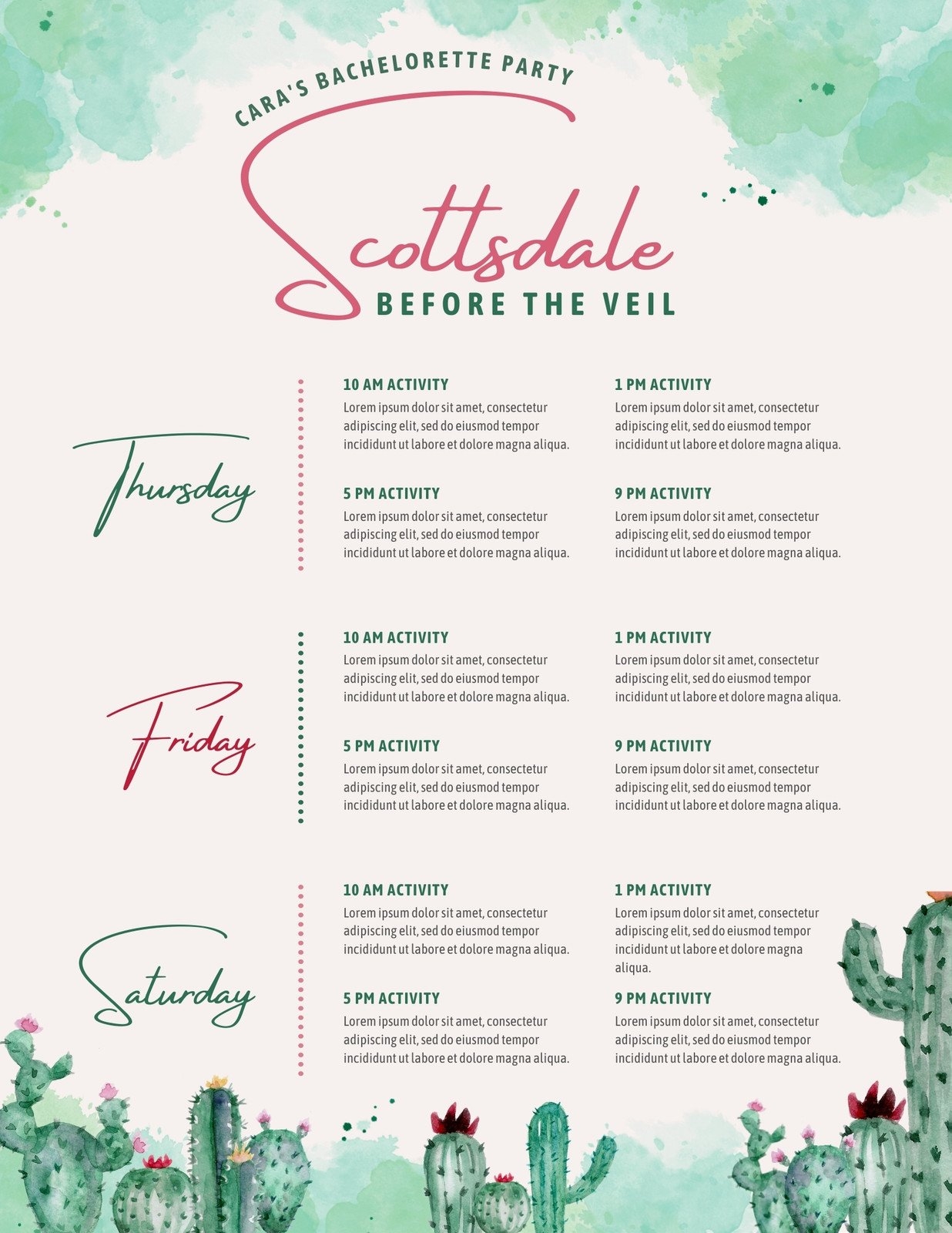 Tropical Bachelorette Itinerary Template Han Party Itinerary
