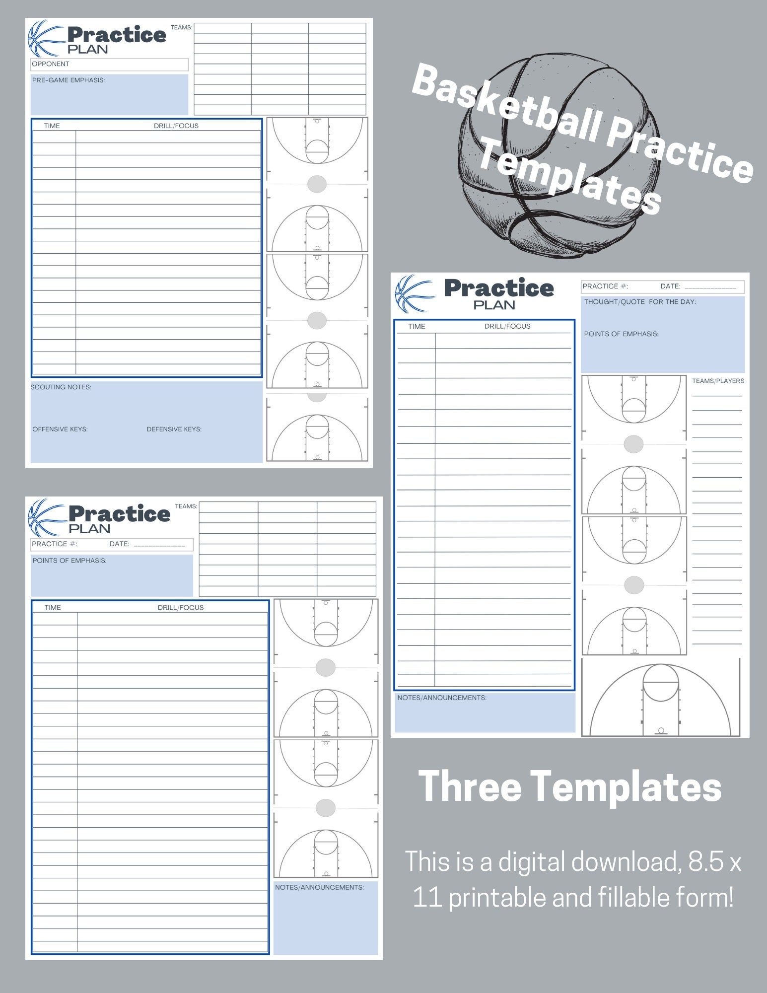 Basketball Practice Plan Templates 3 Digital Download Blue Etsy