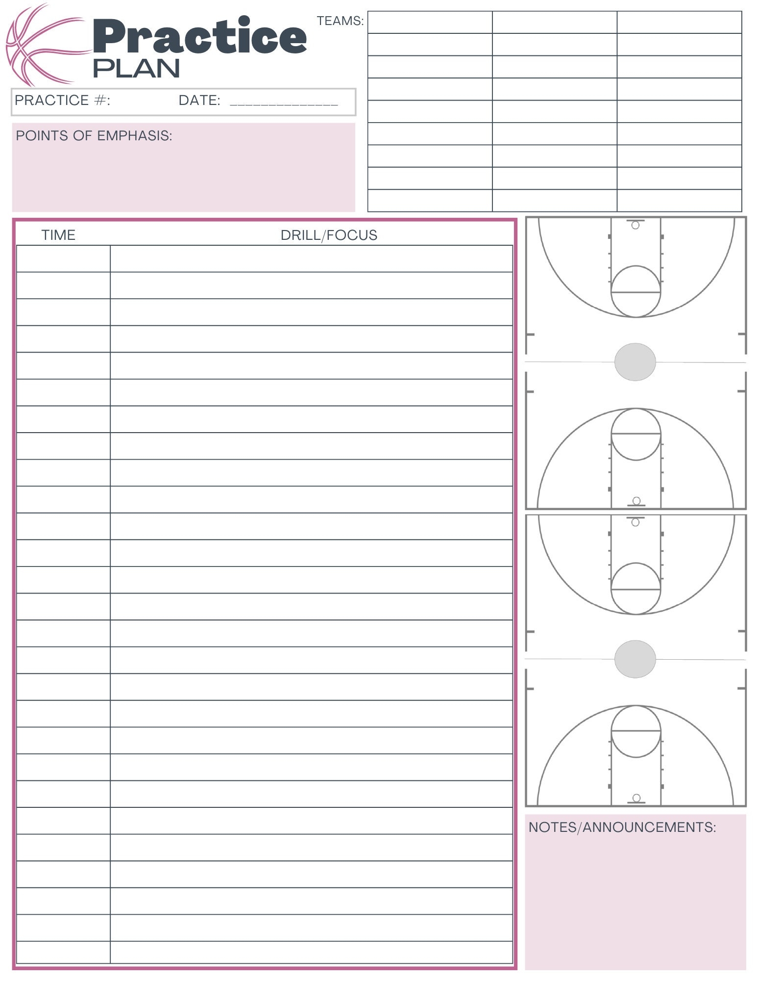 Basketball Practice Plan Templates 3 Digital Download Pink Etsy