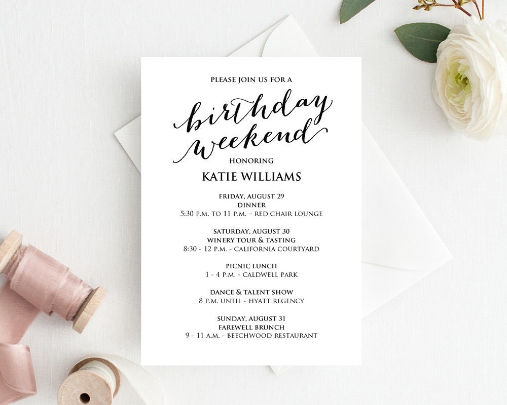 Birthday Weekend Itinerary Birthday Weekend Invitations Birthday Weekend Agenda Birthday Weekend Itinerary Template Weekend Itinerary Etsy UK