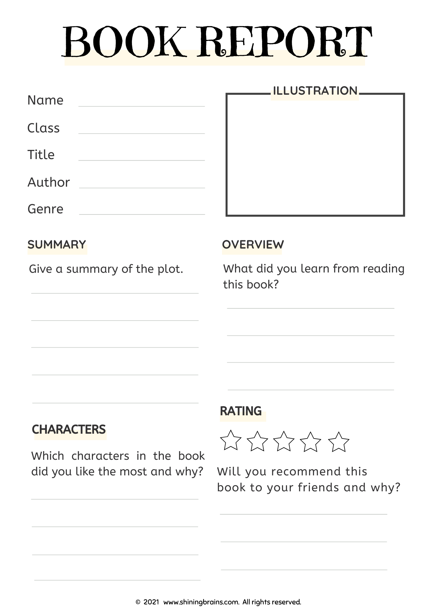 With this template, students can easily organize their thoughts and opinions about the books they read. It includes sections for summarizing the plot, discussing characters, analyzing themes, and sharing their overall rating.