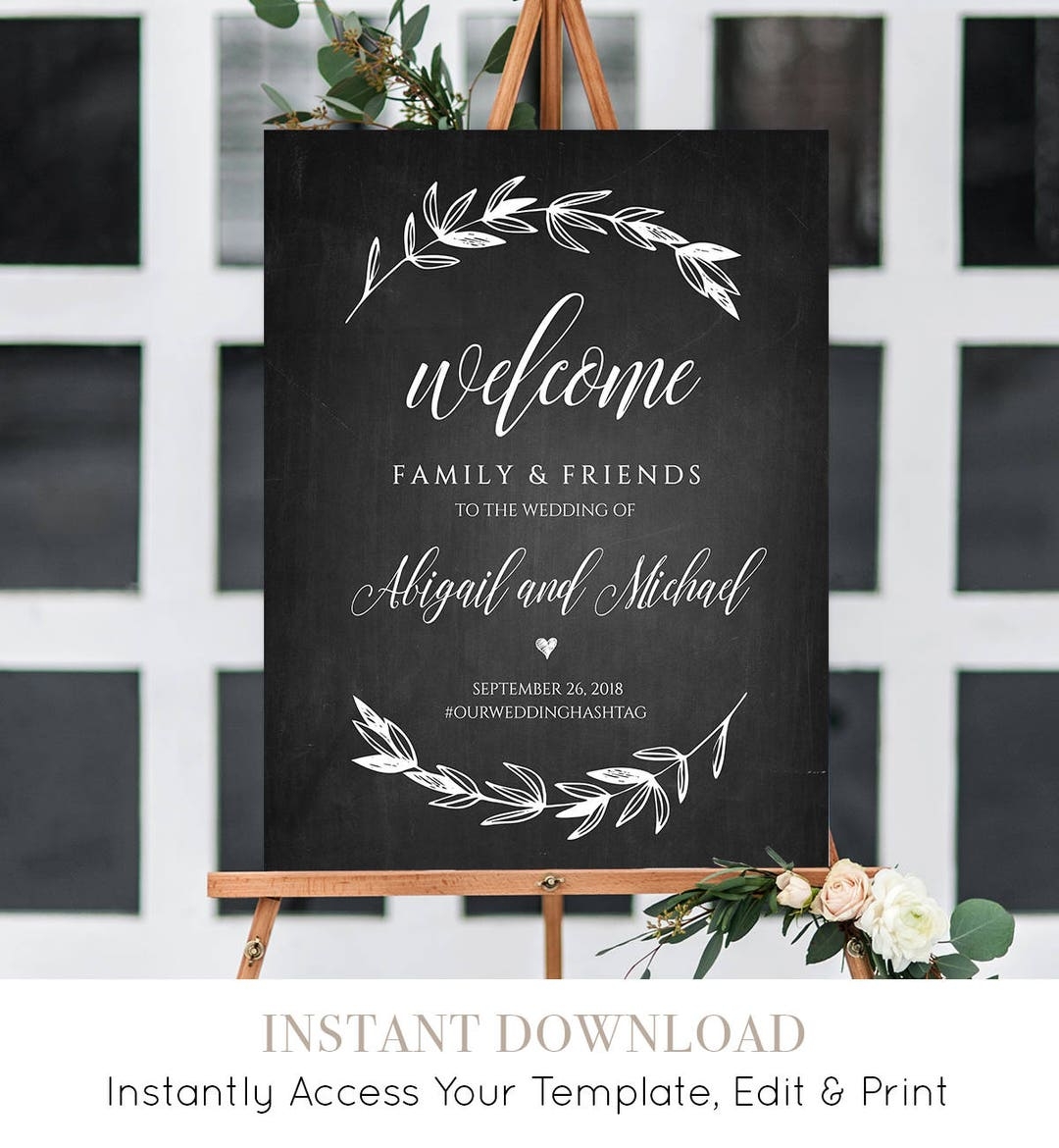 Wedding Welcome Sign Template Chalkboard Wedding Poster Printable Rustic Laurels 100 Editable Instant Download 18×24 24×36 023 101LS Etsy